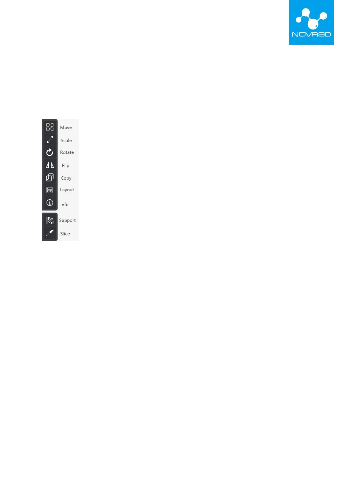 After selecting the model with the left button, the toolbar on the left side of the software will be
