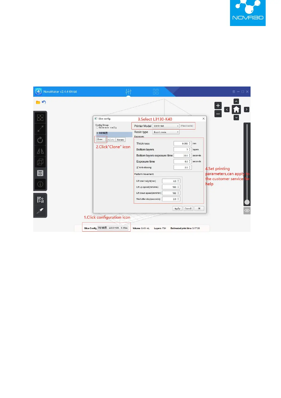 Parameter configuration is required before slicing. Even for the same model, different