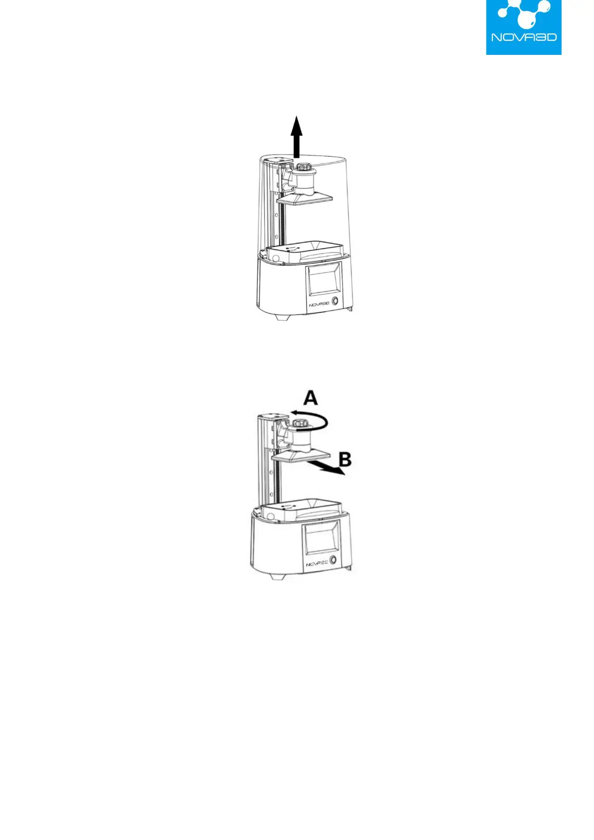 Remove the platform. Be careful not to spill the liquid resin on the printer and its surroundings.