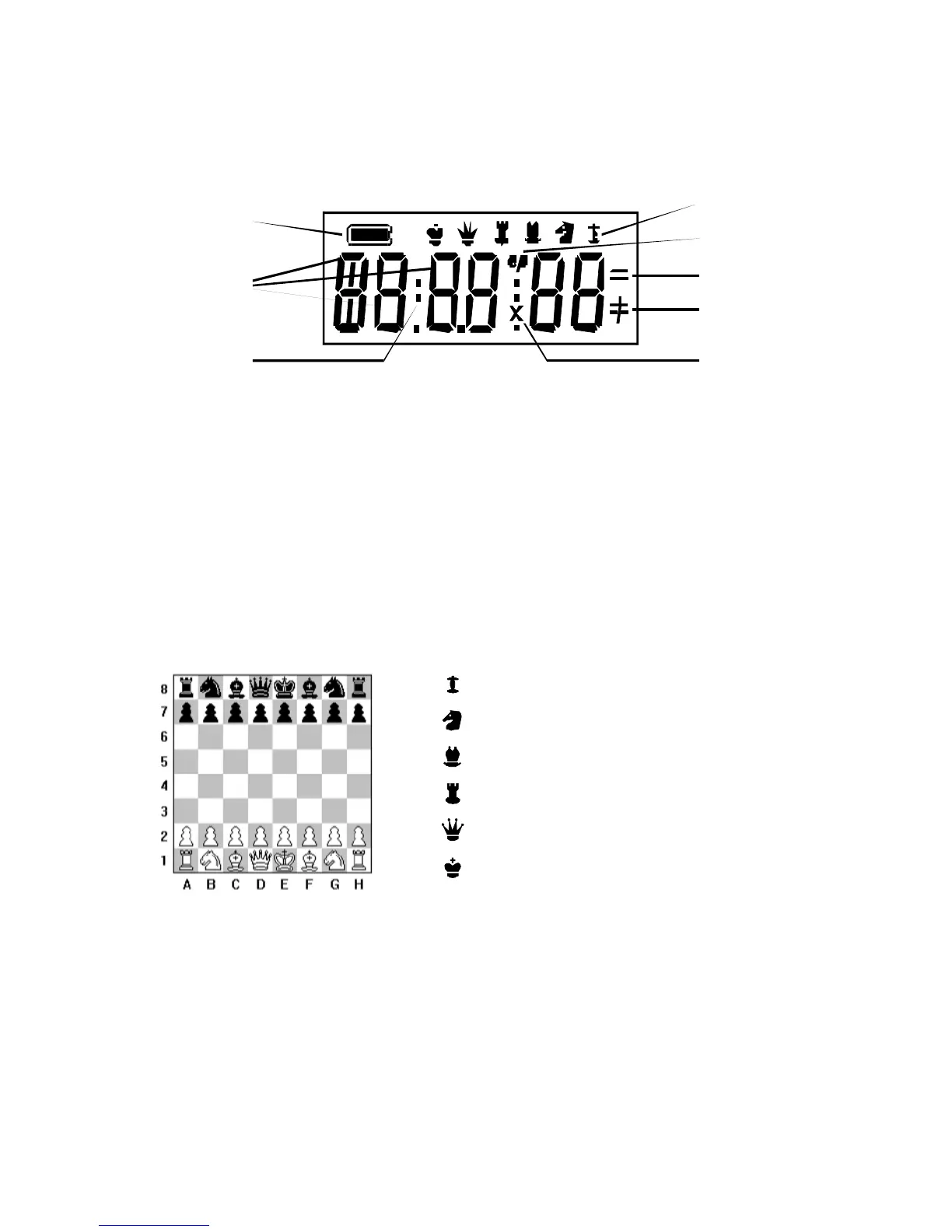 3 = Separation der Zeitanzeige 7 = Symbol für Schach / Matt