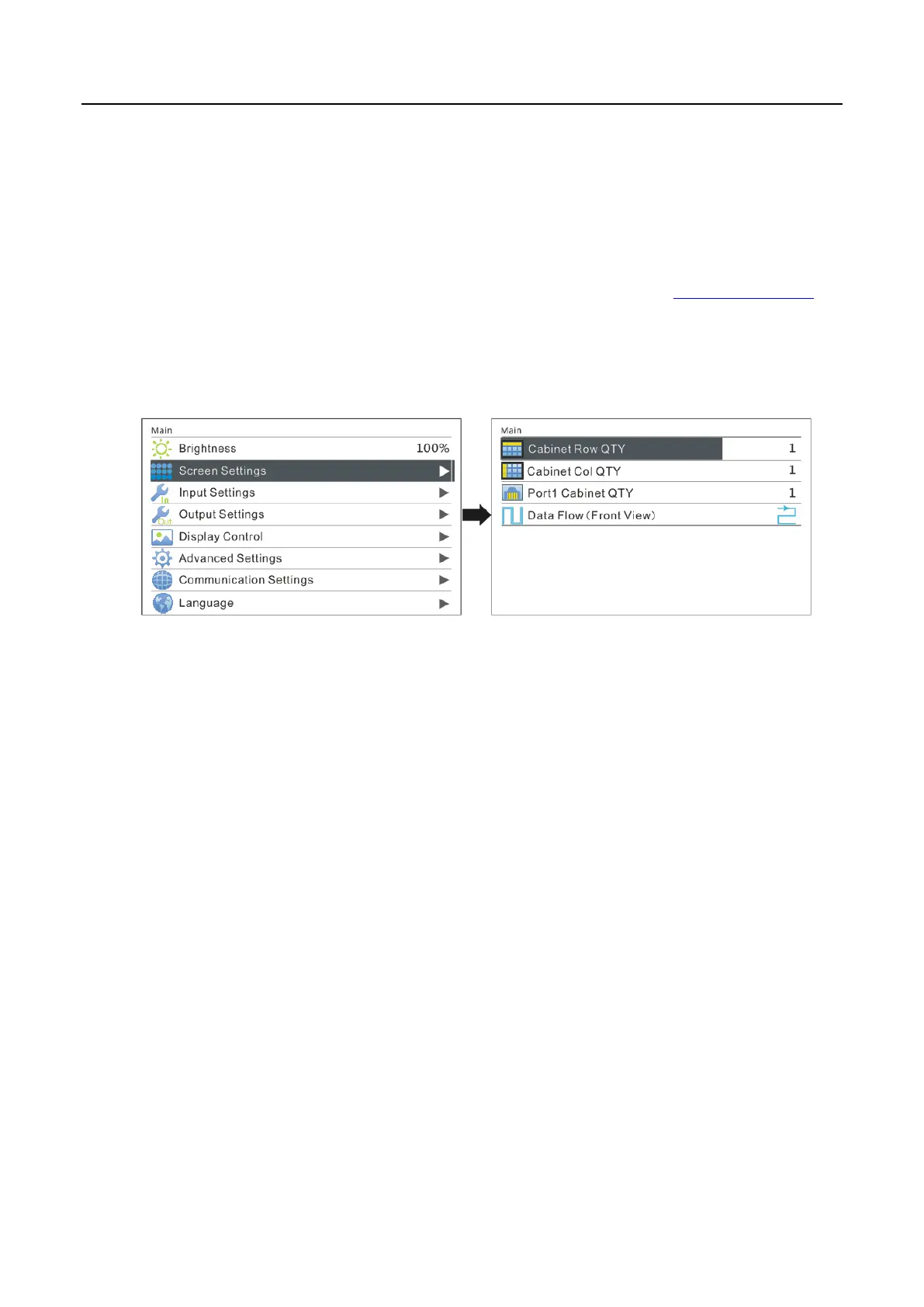 Step 2 Enter into the submenu of "Screen Settings" submenu. The options are shown