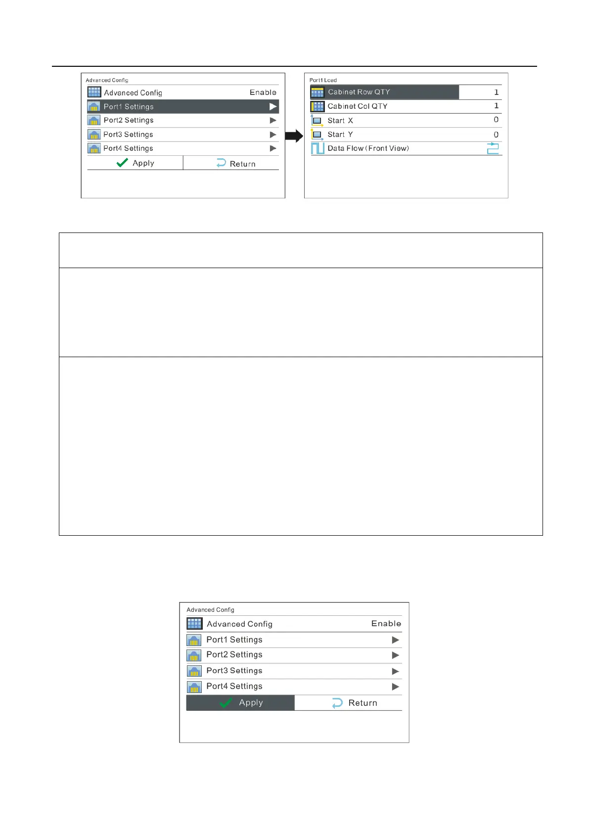 After Port Settings are completed, select "Apply" and press the knob to apply