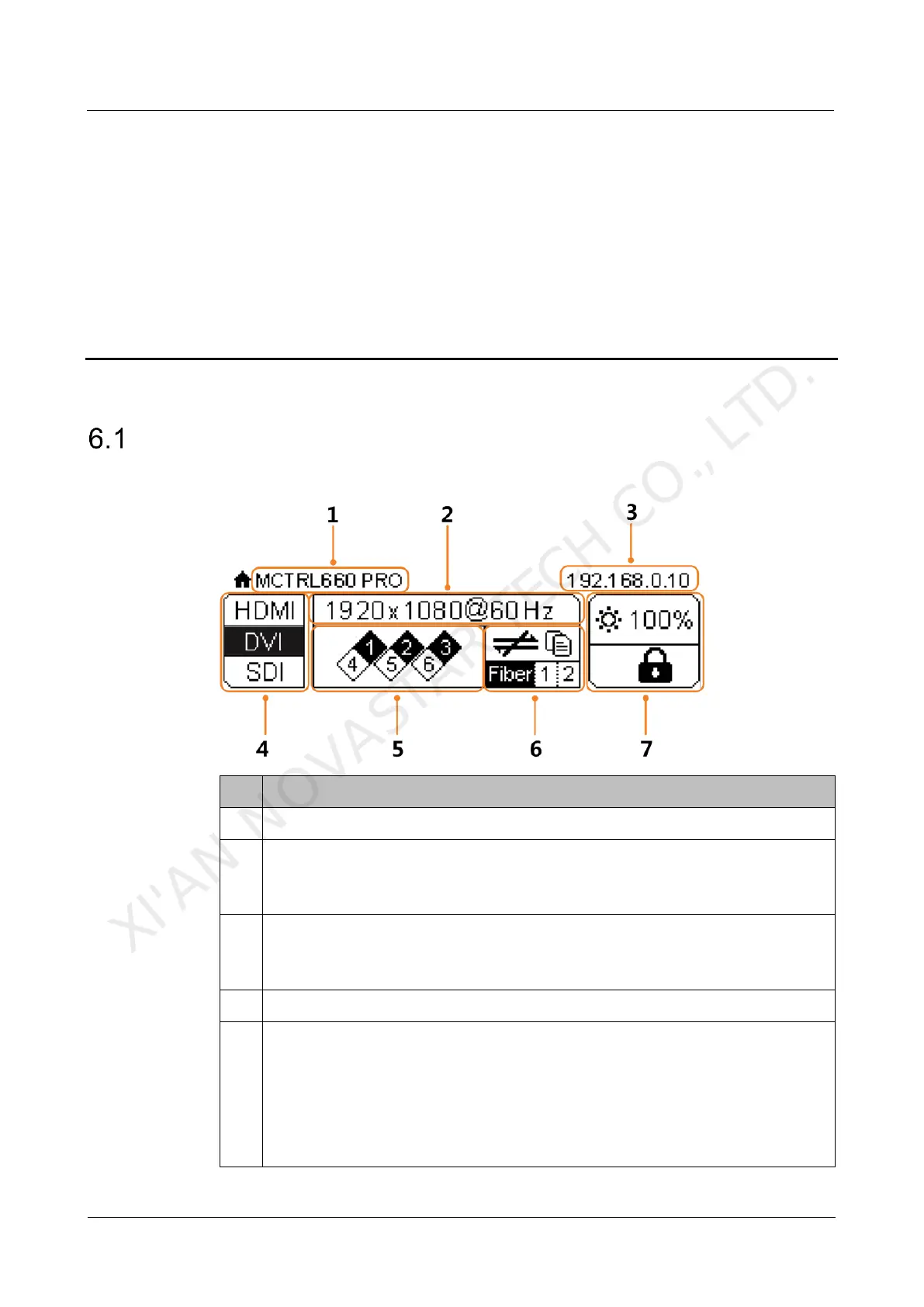 In the sending card mode, the home screen of the MCTRL660 Pro is shown below.