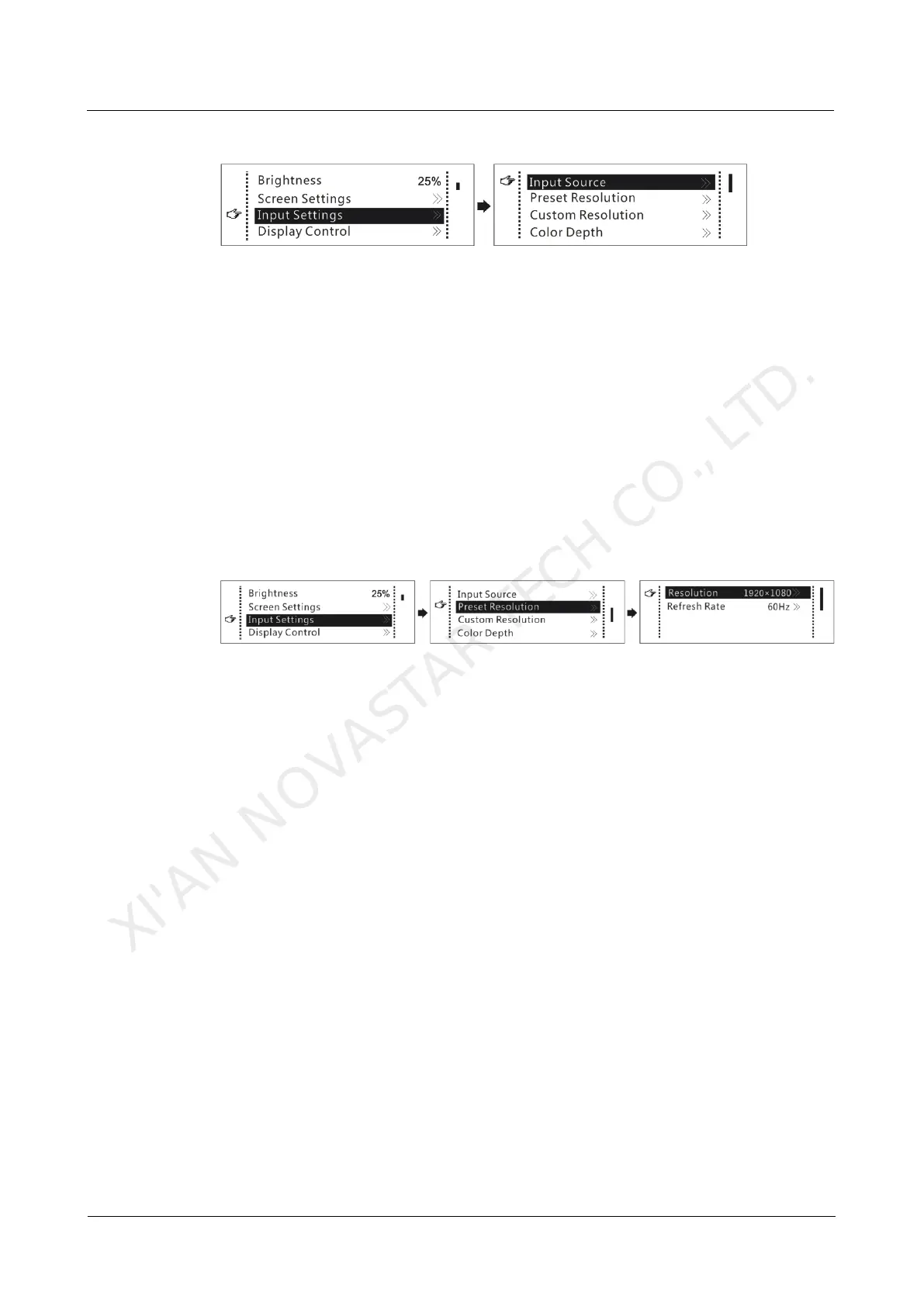 Step 2 Choose Input Settings > Preset Resolution to enter its submenu.