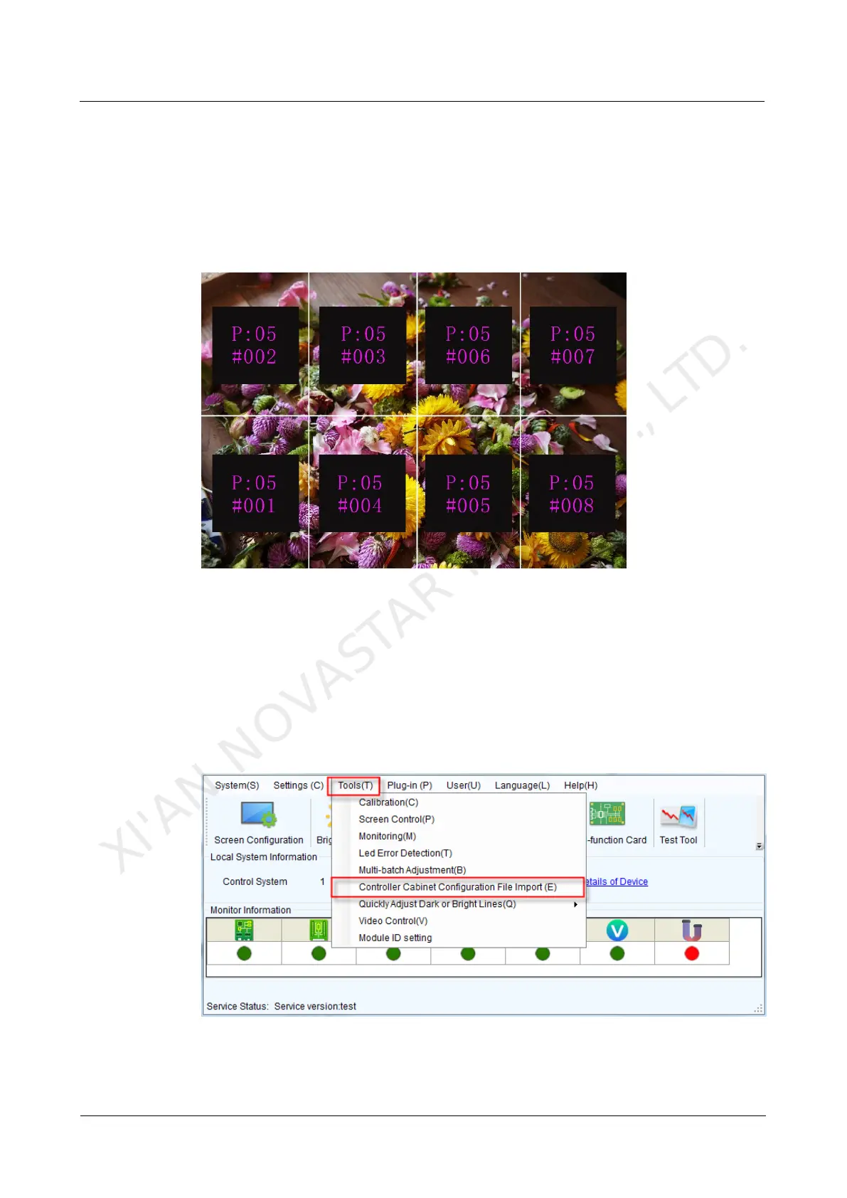 Example: P: 05 indicates the Ethernet port No. #001 indicates the cabinet No.