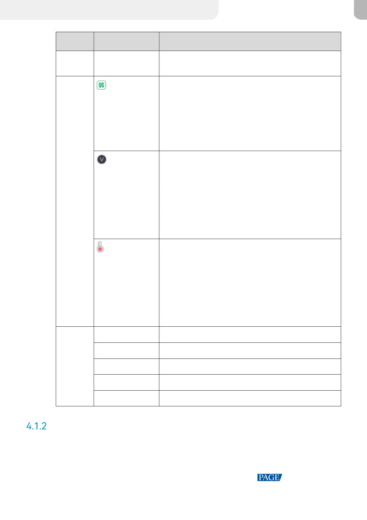 Yellow: Fan speed alarm. The speed exceeded the threshold
