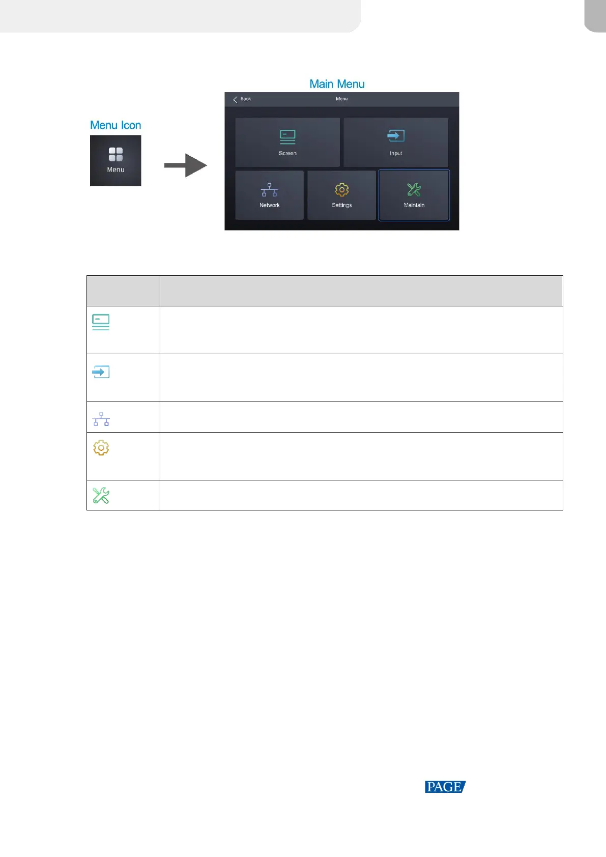 Table 4-2 Main menu description