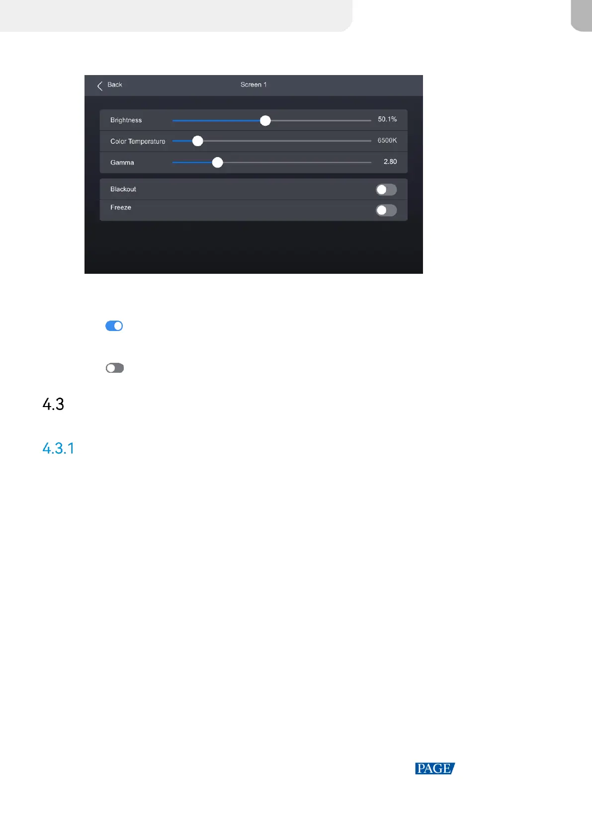 Step 3 Select Blackout or Freeze and then press the knob to toggle on or off the switch.