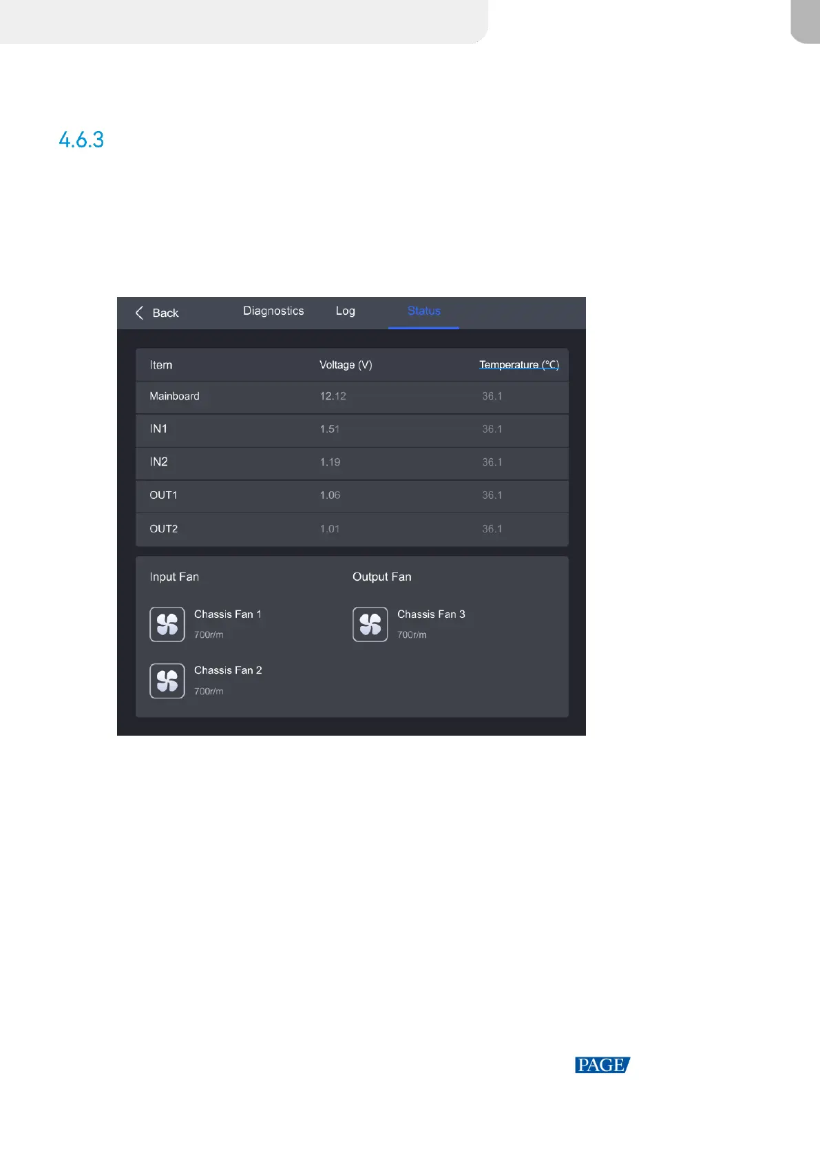 Step 2 Navigate to the Status tab to check the device status.
