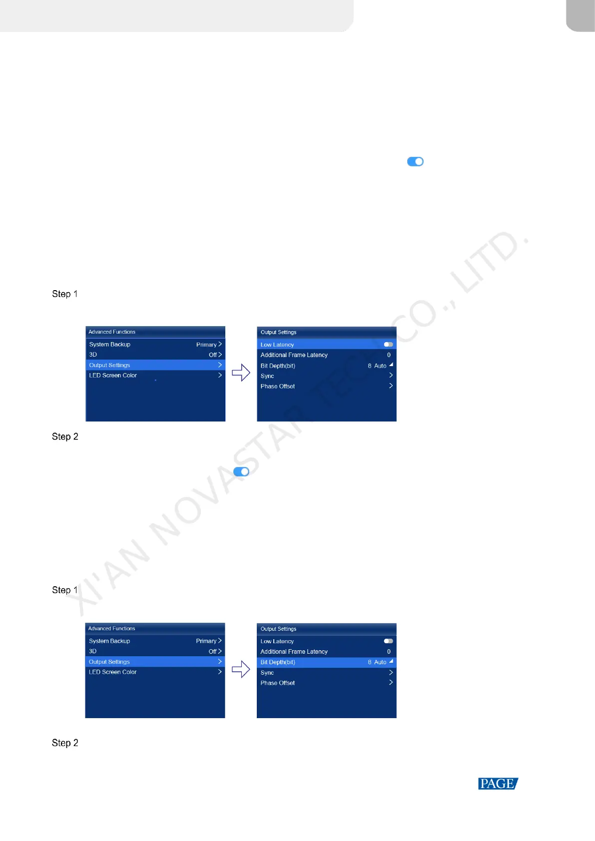 Set the Low Latency switch to to enable the low latency function.