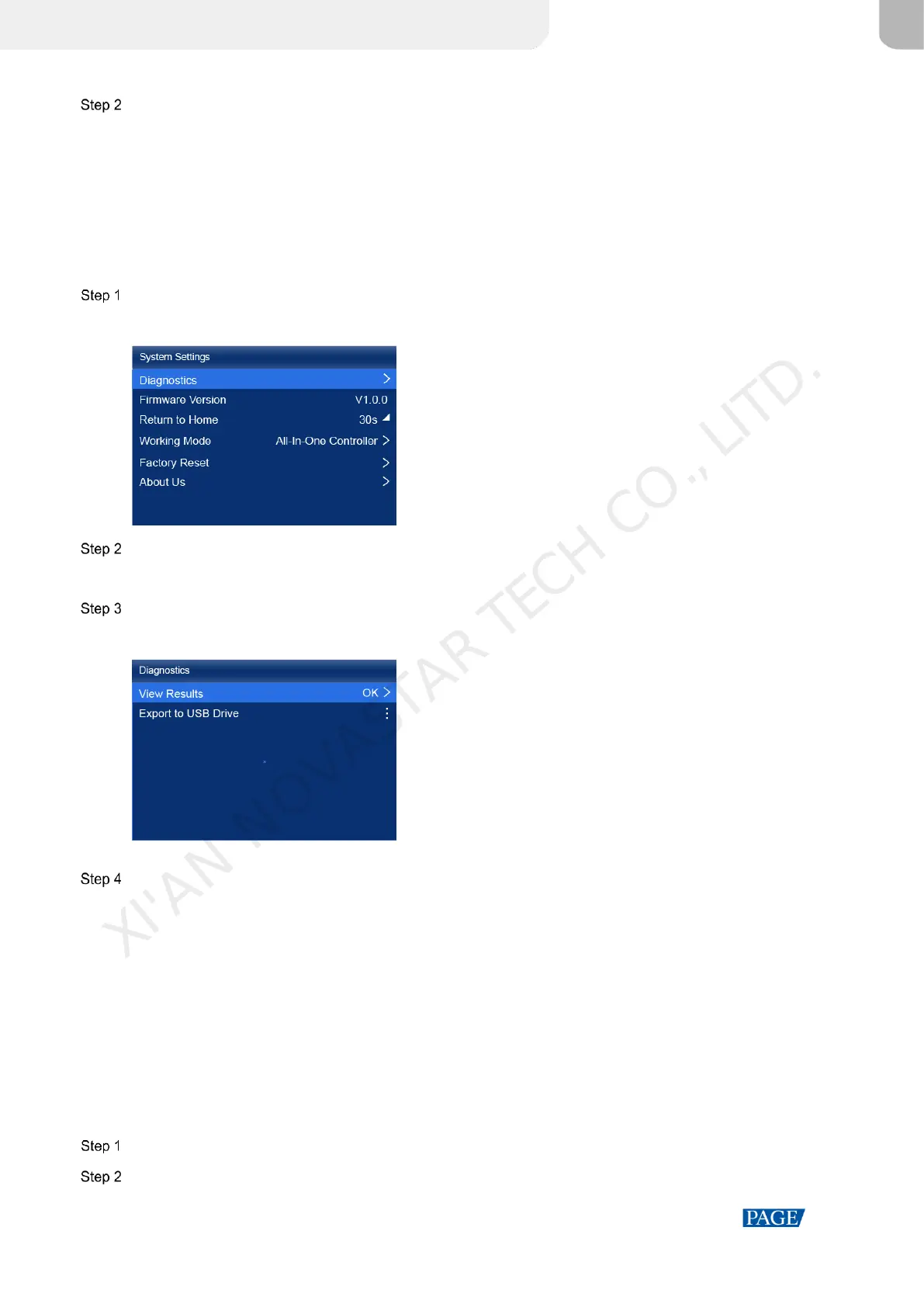 On the main menu screen, choose System Settings > Diagnostics.