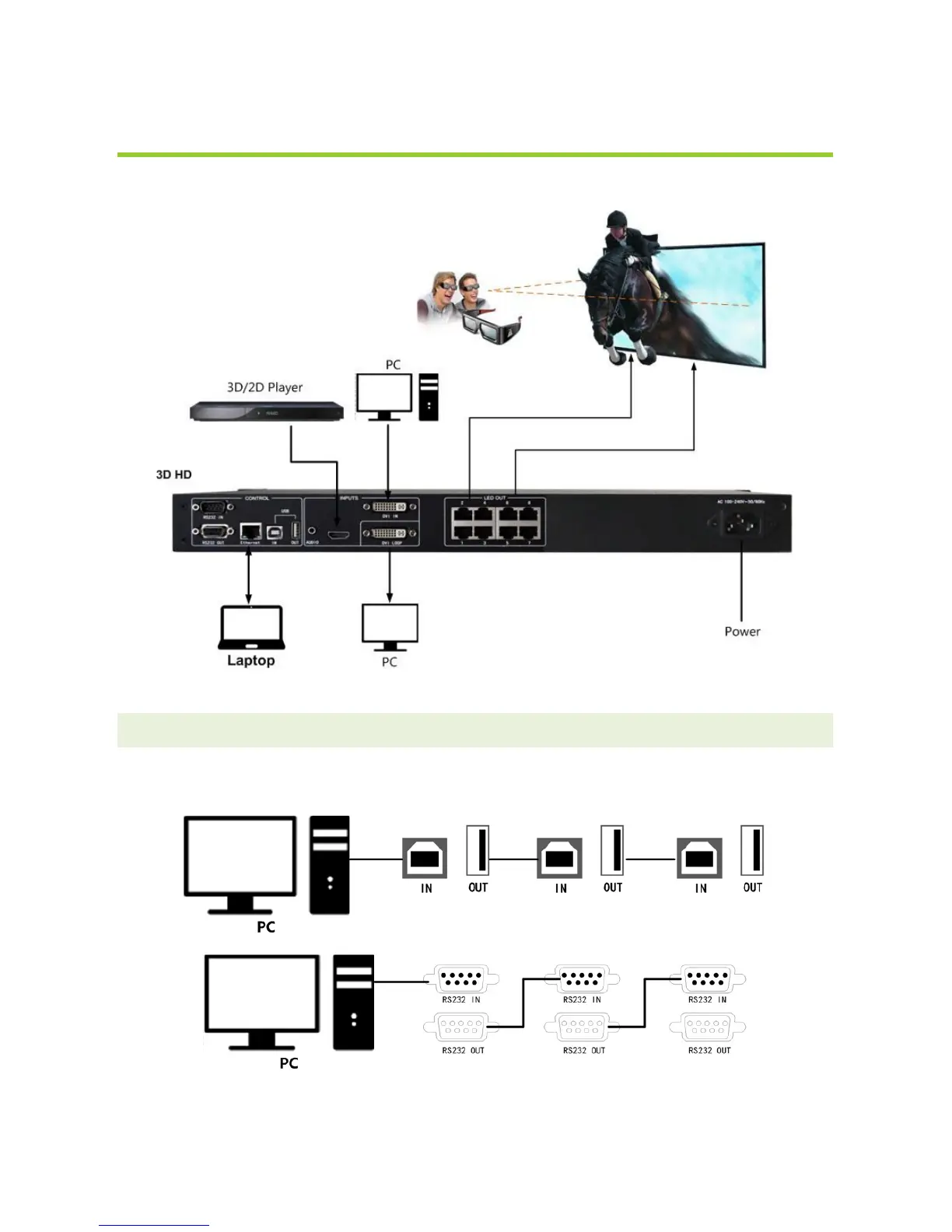 If it is required to control more than one sets of 3D HD, please connect them according to the following figure.