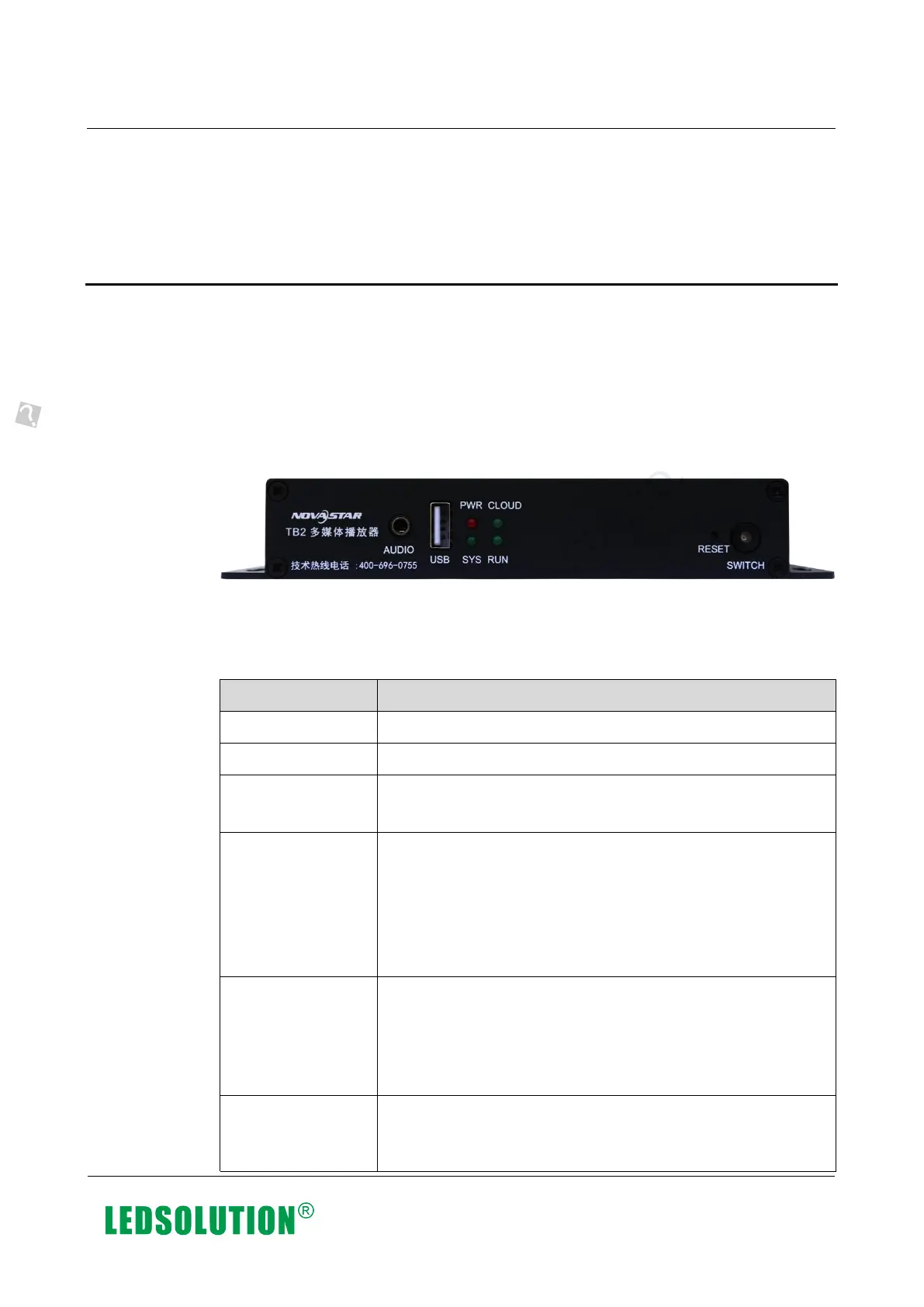 Table 4-1 Description of TB2 front panel
