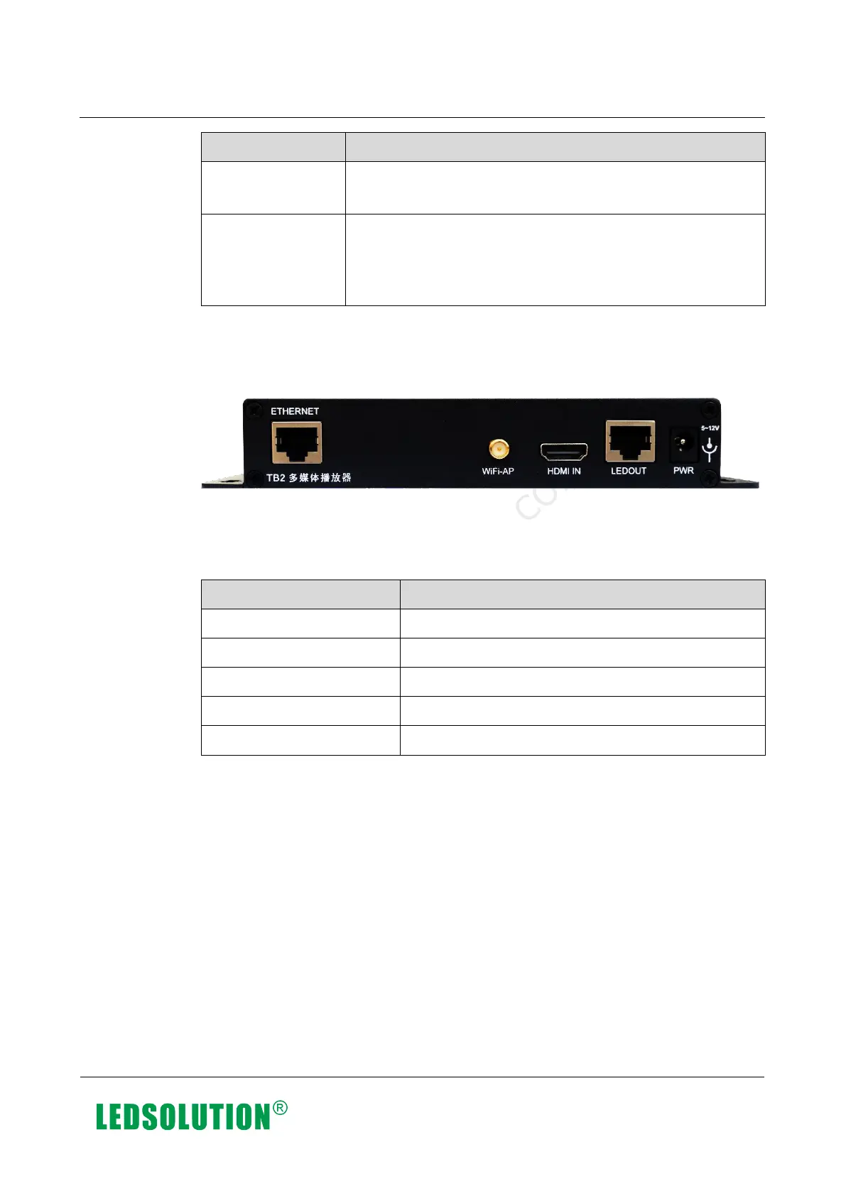 Table 4-2 Description of TB2 rear panel