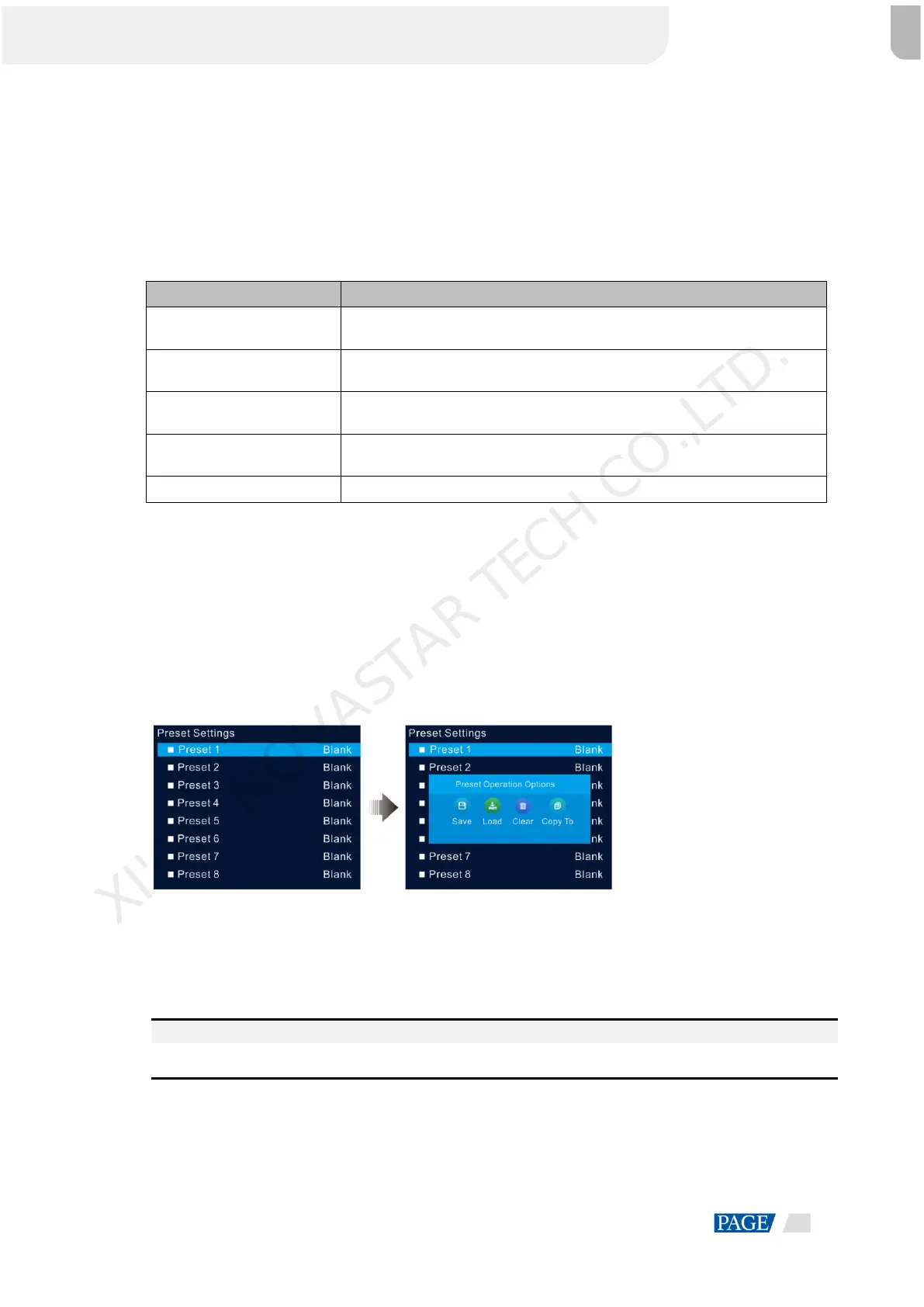 The VX16s supports 10 presets. Users can save, load and clear the configured presets.