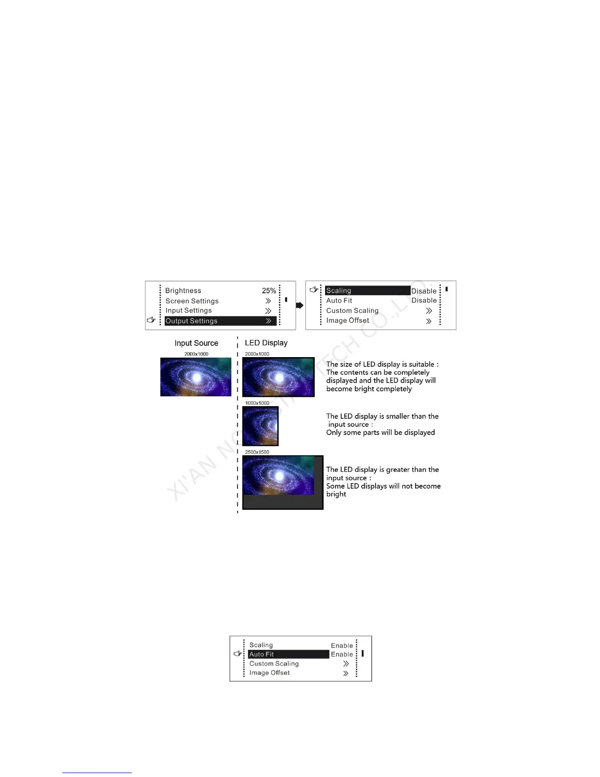 scale output is used. If the input resolution is smaller than the LED display in one direction, LED display