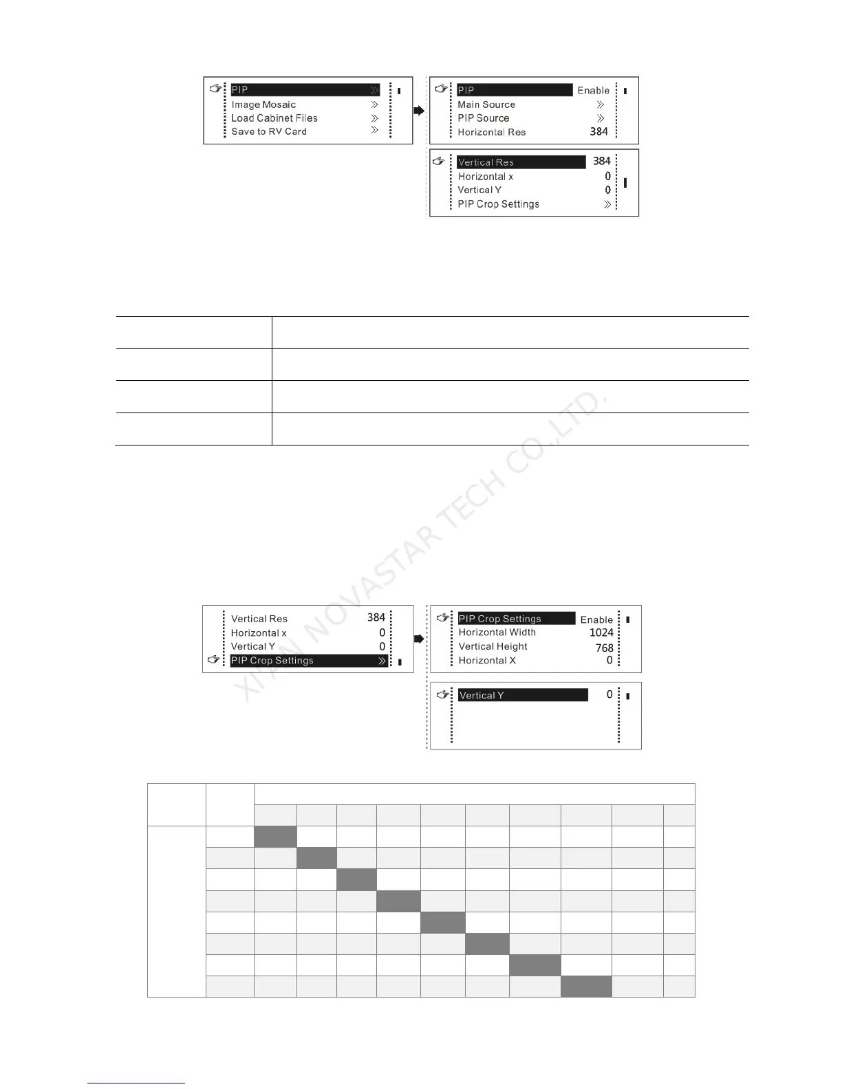 Picture is cropped from the set starting position and is displayed on PIP and its size is set horizontal width