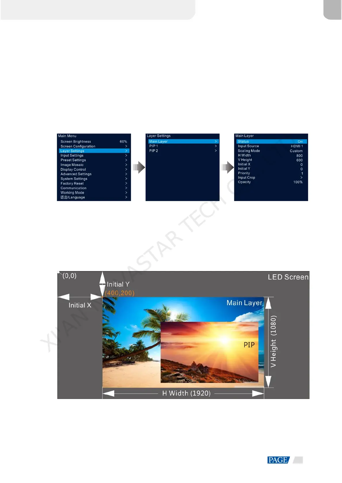 Step 3 Rotate the knob to select Main Layer, PIP 1 or PIP 2 and press the knob to enter the corresponding settings