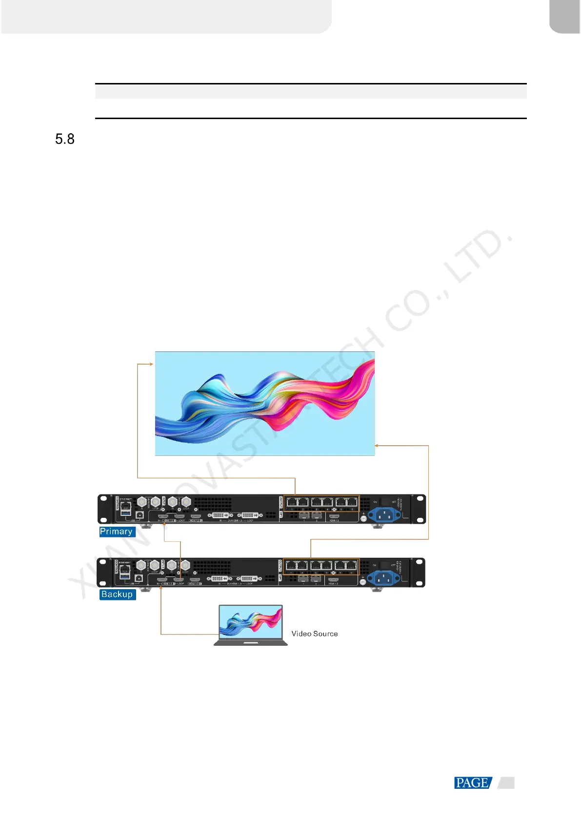 The advanced settings allow you to set the device backup, input source backup, synchronization, HDMI