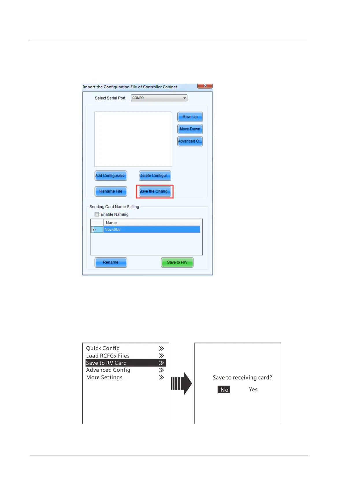 you save the configuration data to receiving card by using the Save to RV Card