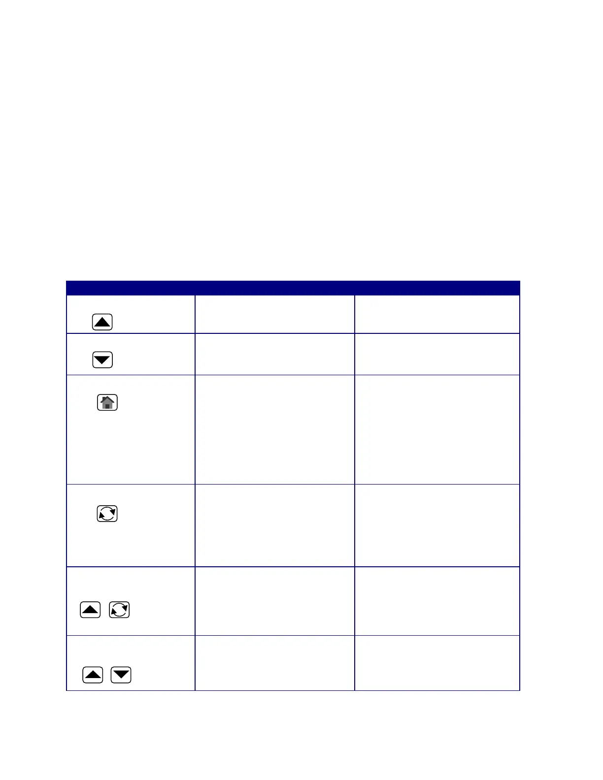 Table 1 –Button Functions