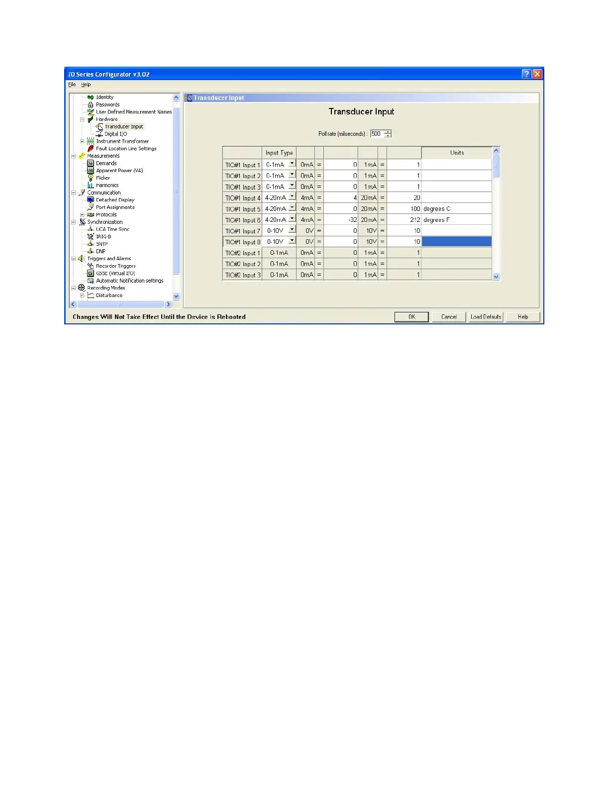 Figure 23 – 70 Series Configurator Software Transducer Input Configuration Screen