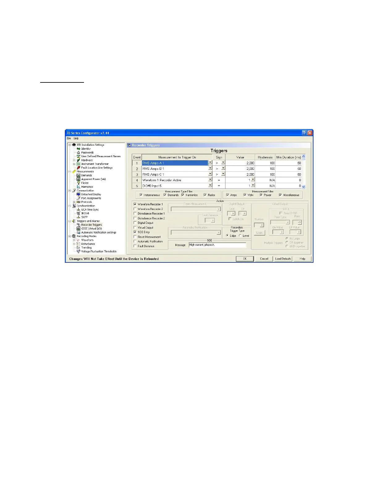Figure A2 illustrates a typical configuration that will initiate an oscillography recording and
