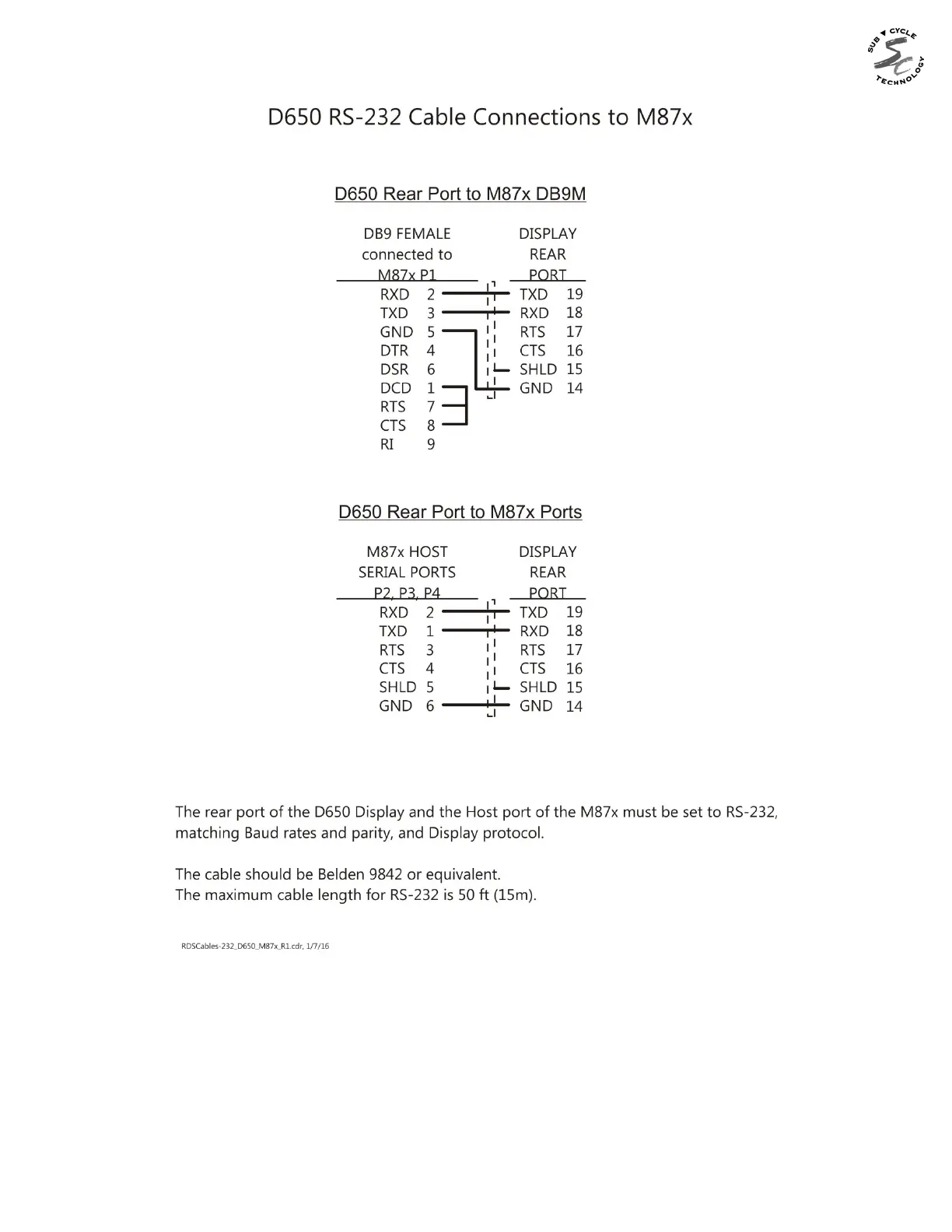 Figure 4B - Typical RS-232 Wiring for D650 Display