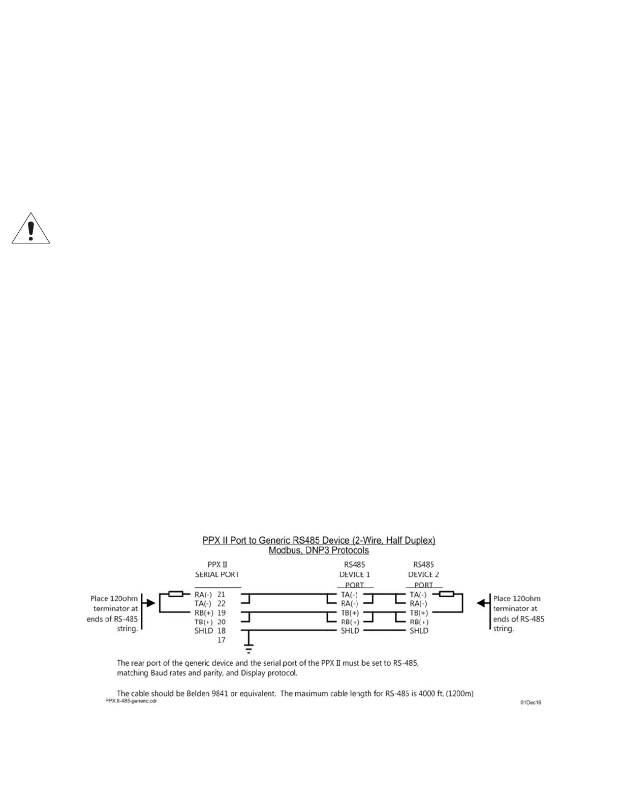 Serial cable requirements for RS485 connection: