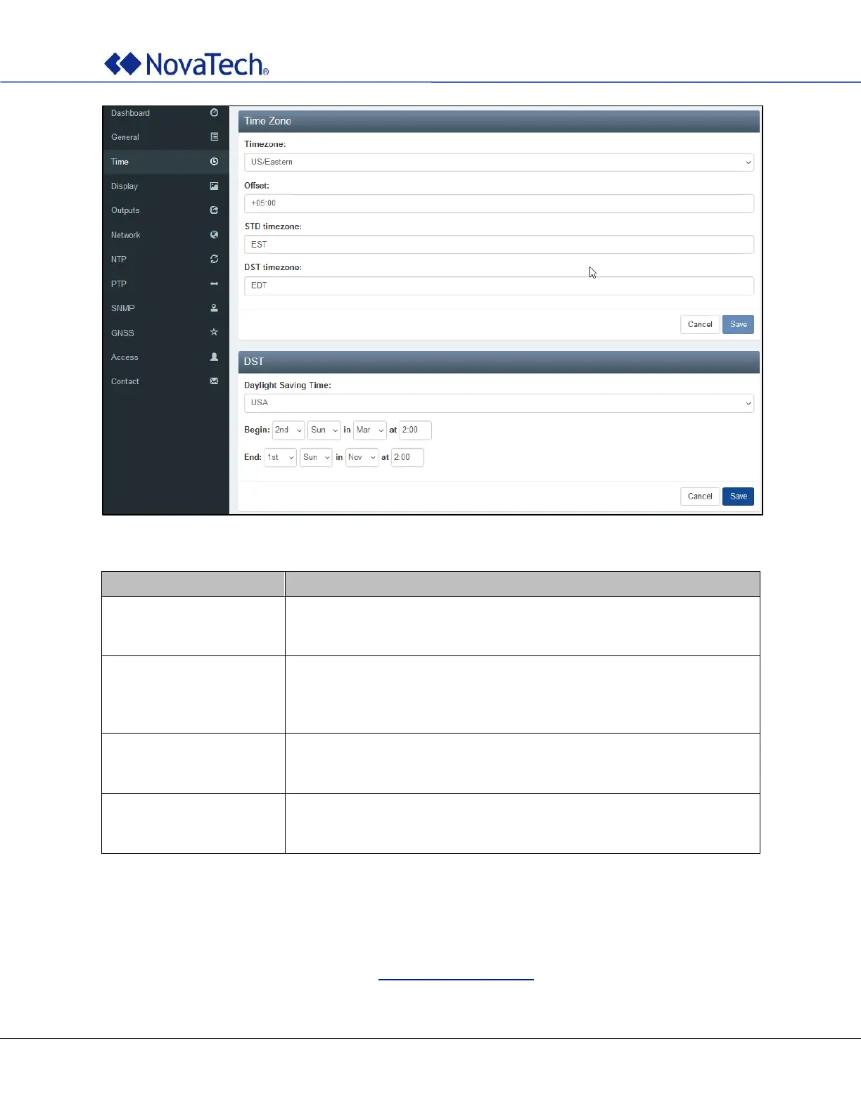 Offset, STD timezone, and DST timezone display the UTC offset, the