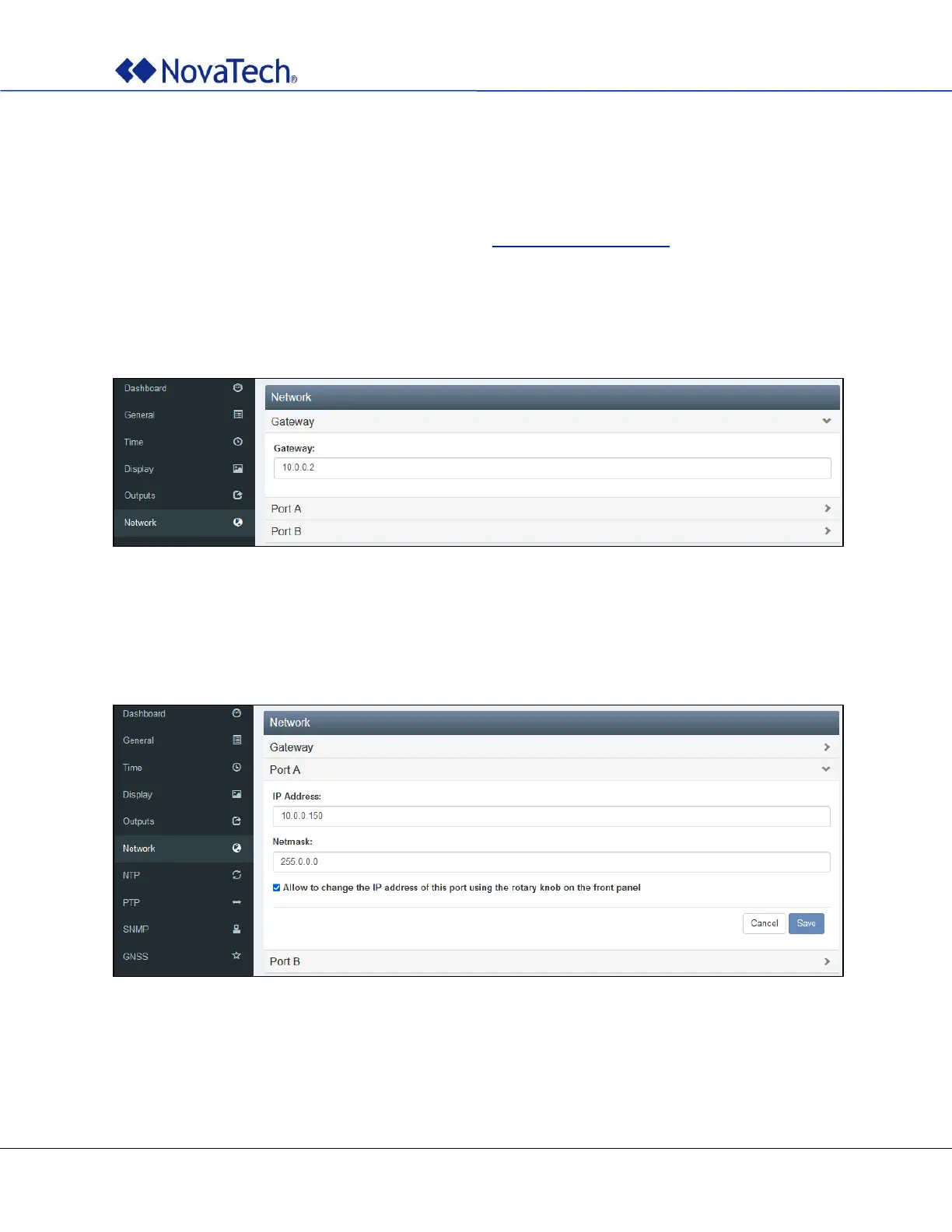 Set the IP address of port A on the following tab.
