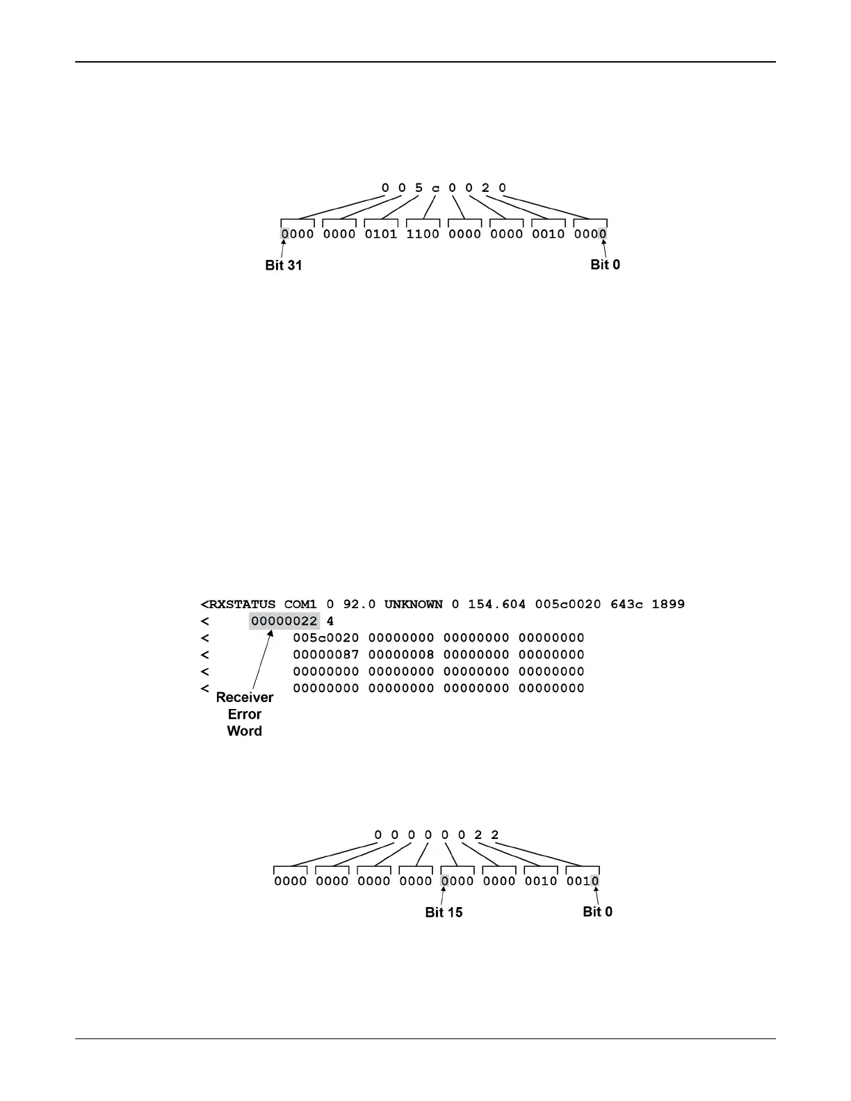 Figure 29: Reading the Bits in the Receiver Error Word below shows an example of a receiver