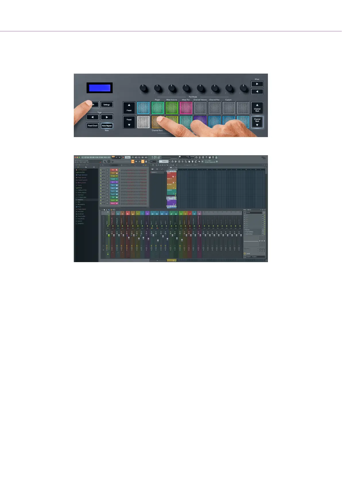 The Channel Rack pad layout follows Channel Rack groups. When you switch Channel Rack groups in