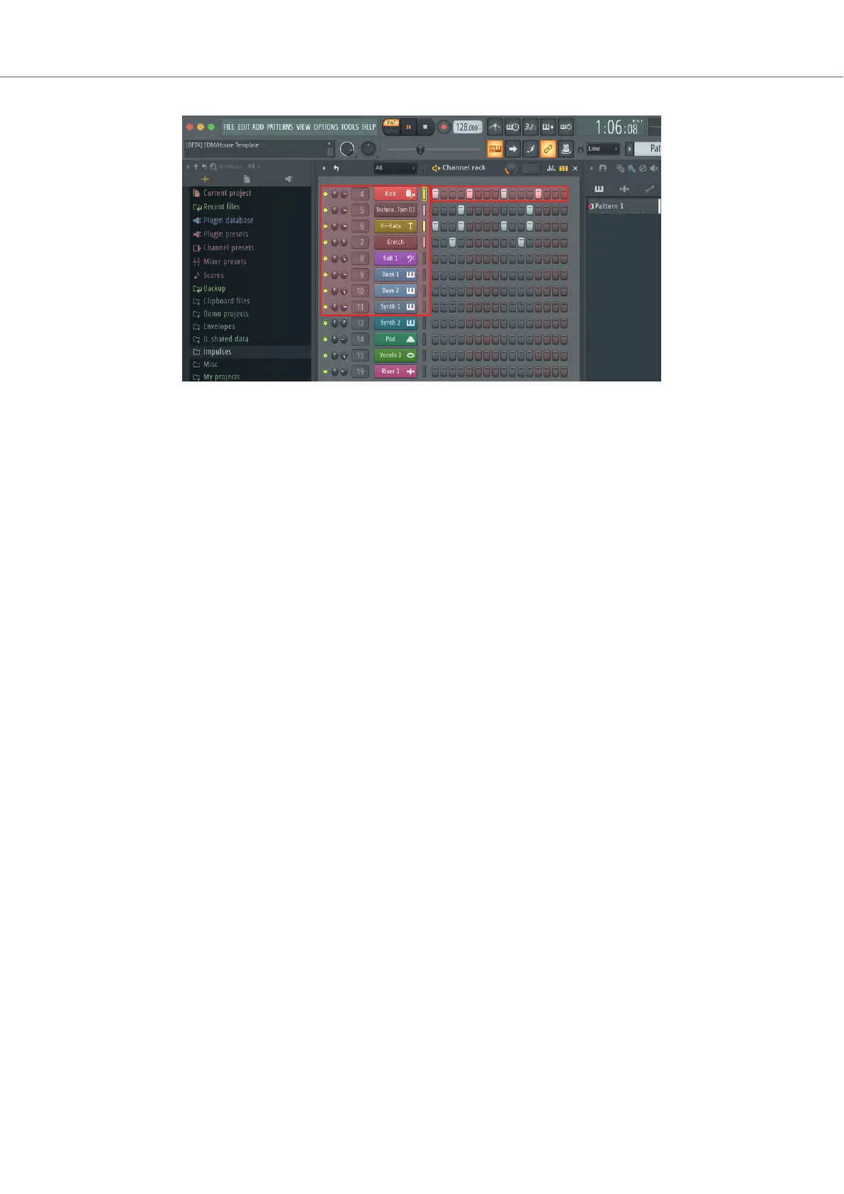 16 steps. A red box briefly highlights which steps you’ve selected in FL Studio’s Channel Rack.