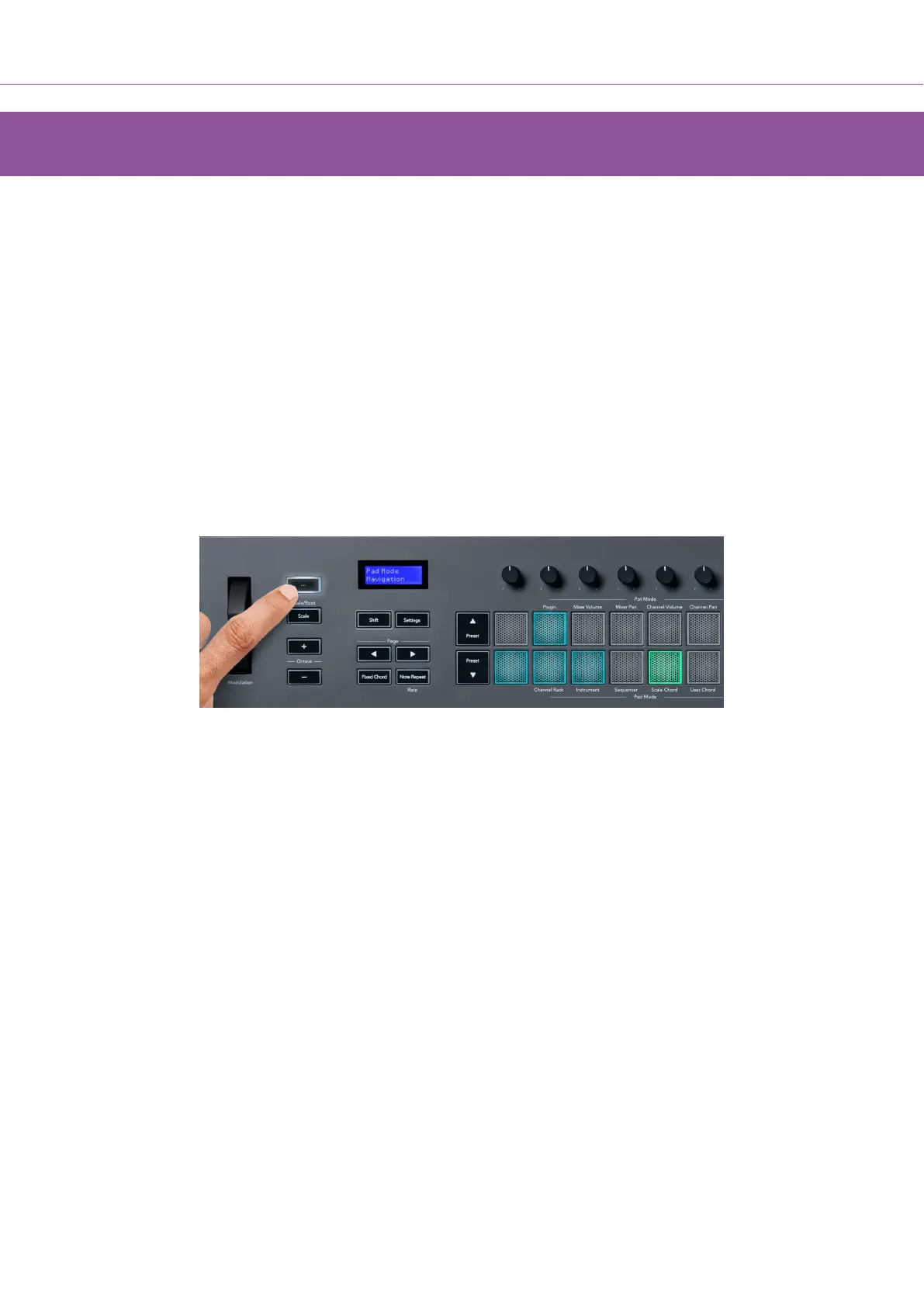 Pressing the “…” button enters FLkey into navigation mode for browsing samples and presets. The