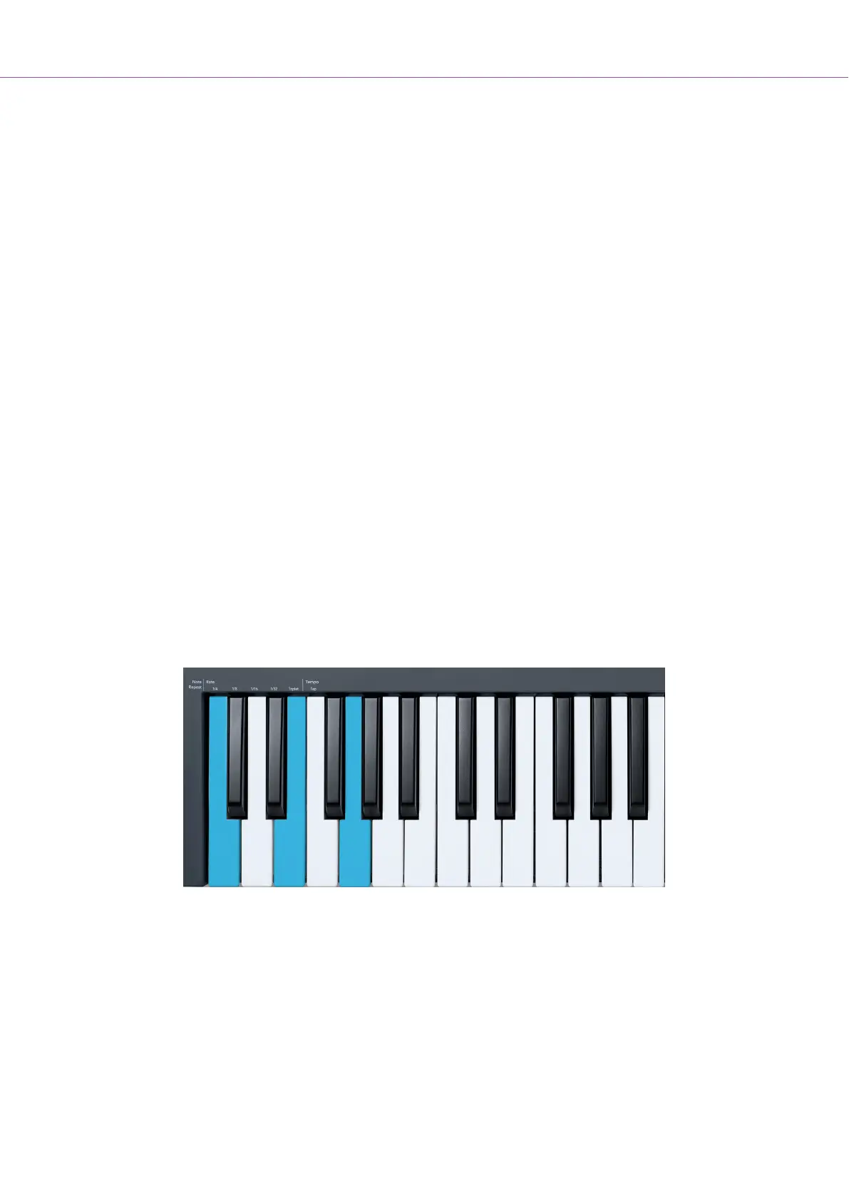 buttons transposes the keyboard up or down by one semitone.