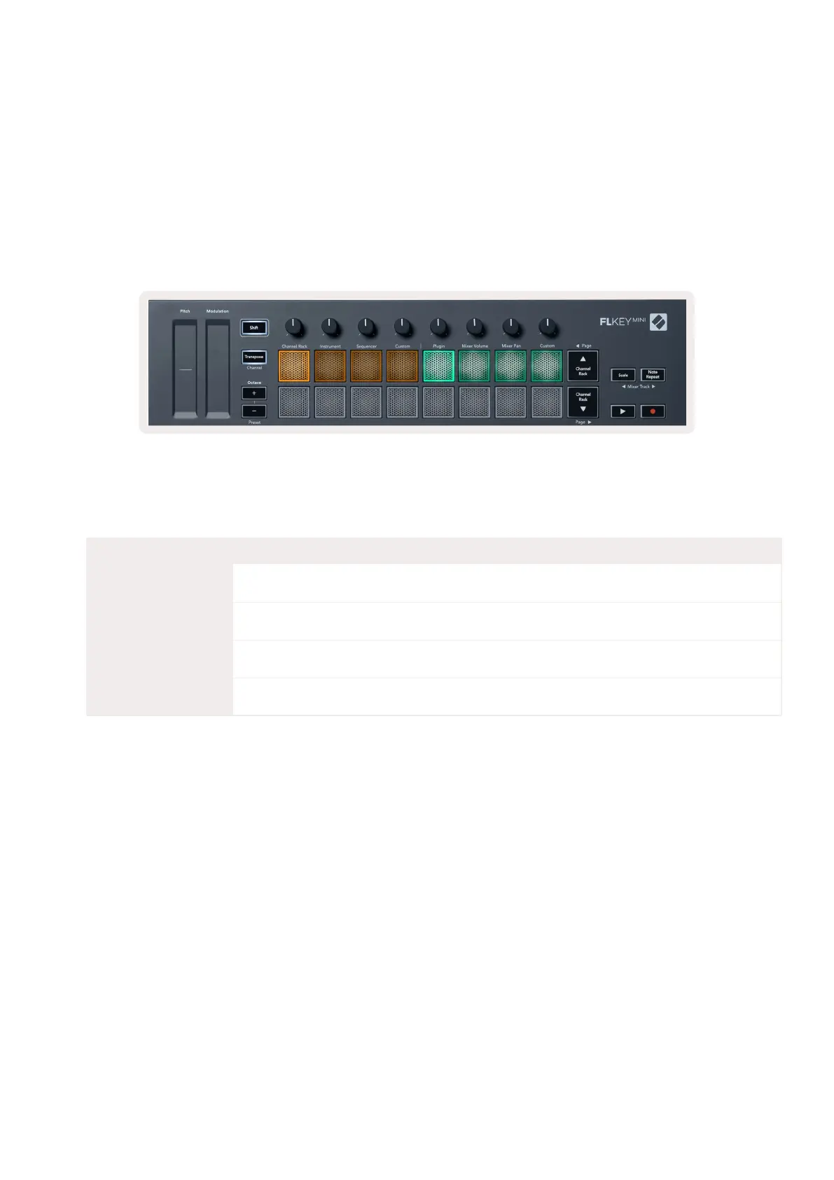 2. Press a pad to select the pot mode you want to use. The table below lists FLkey’s pot modes.