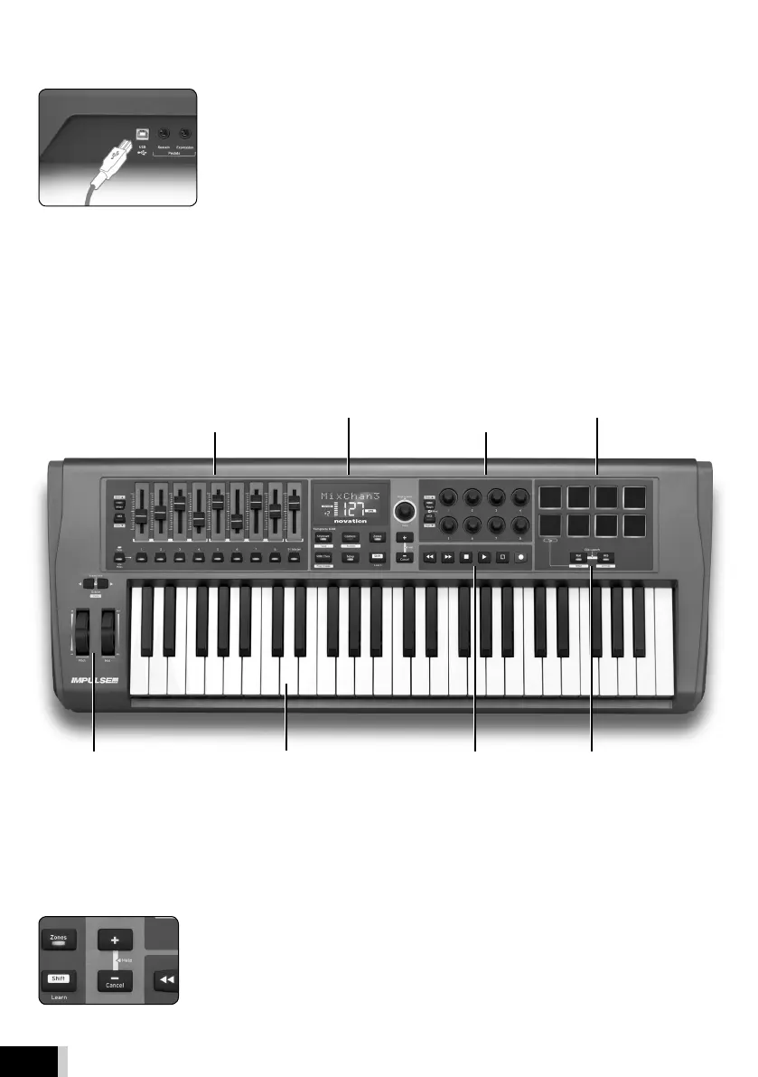 When connected the Impulse will power up and work right away as a MIDI keyboard. The keys will send