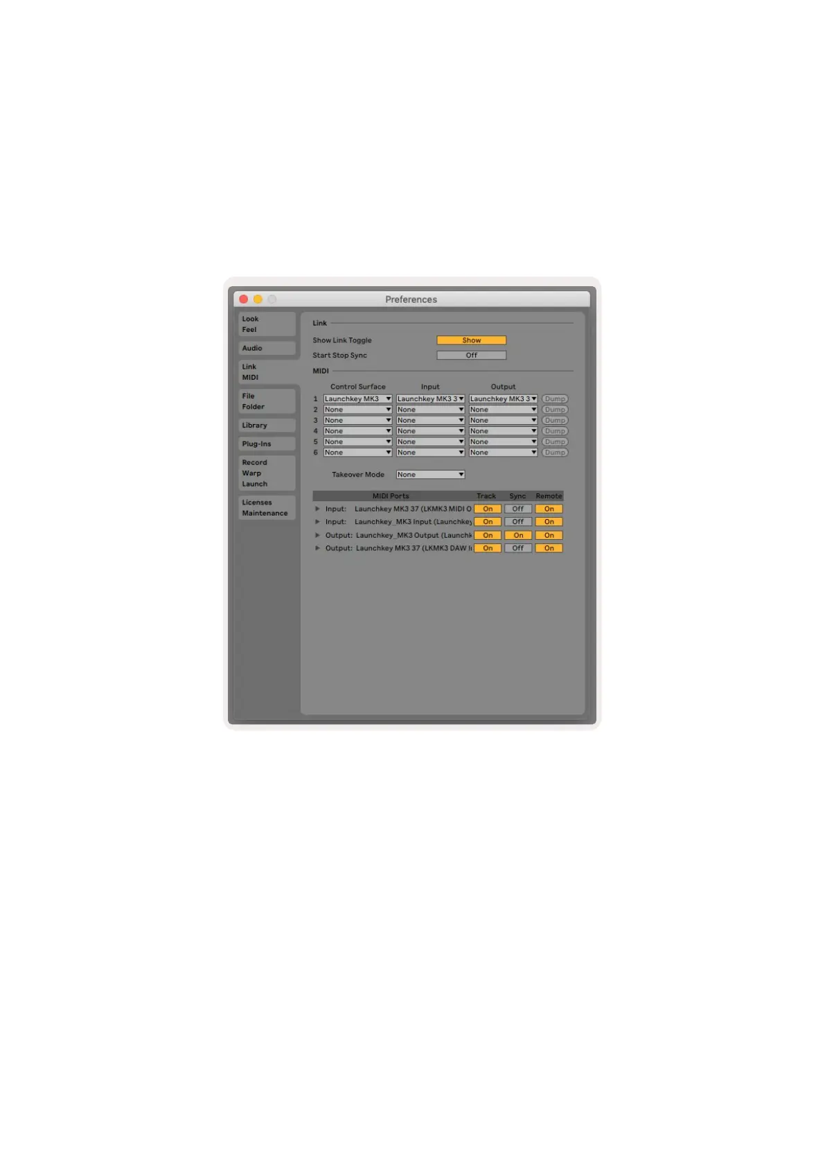 In the Link Tempo MIDI tab you need to copy the settings shown above. Select Launchkey MK3 from