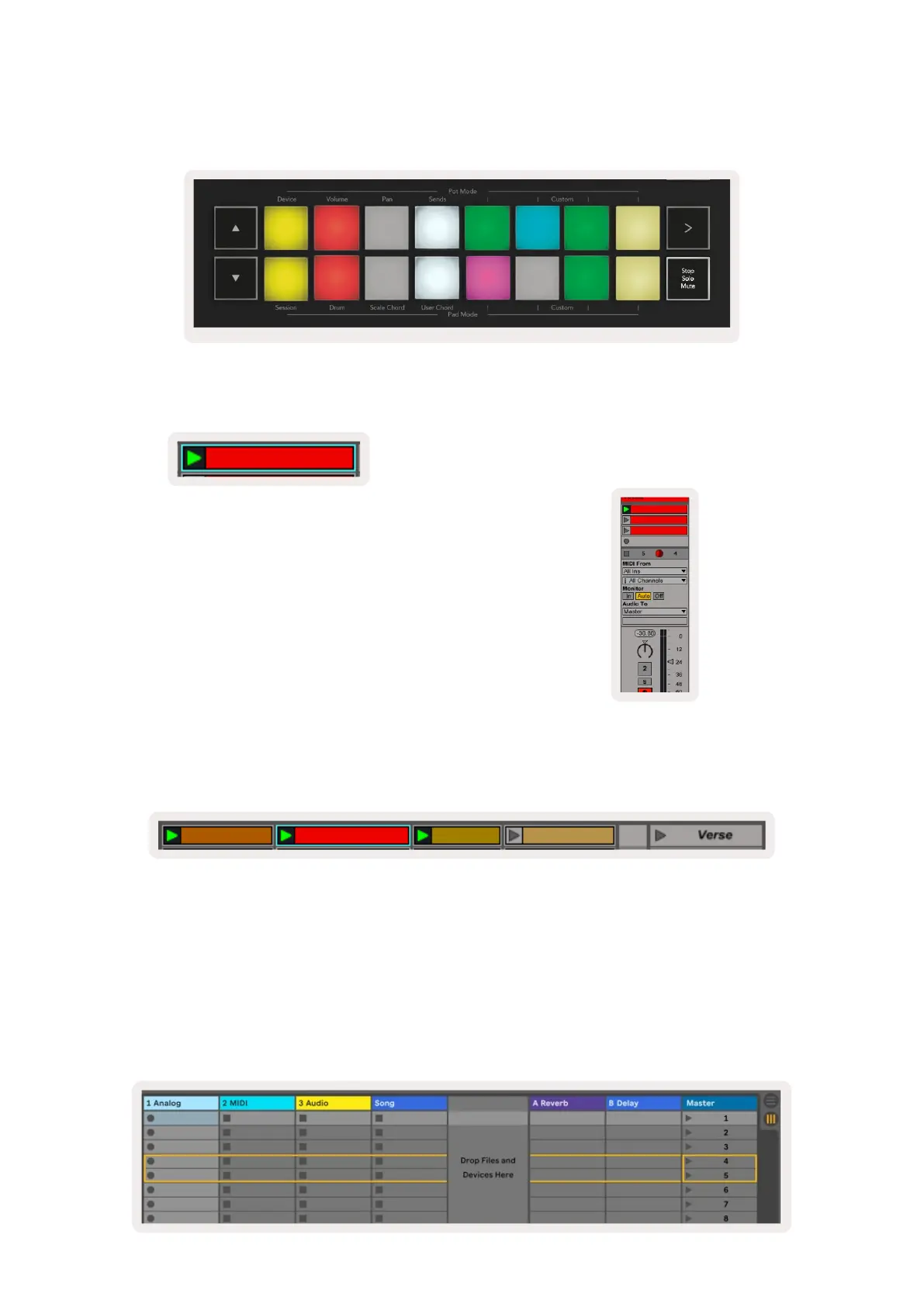 arrange clips into horizontal groups (across tracks) to form a song structure, launching scene after