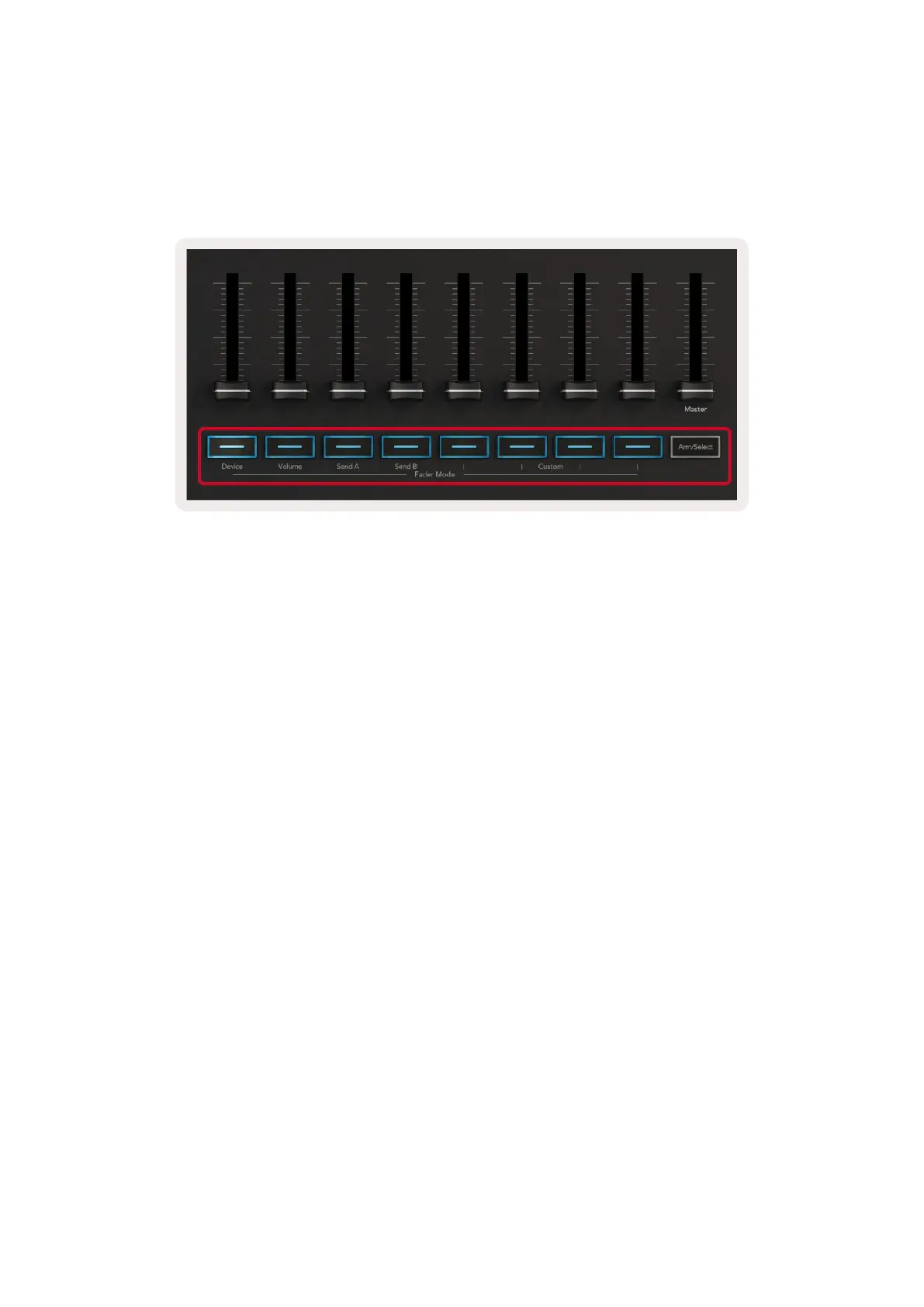 Volume mode links the Launchkey’s pots or faders to control the volumes for the track bank you select.