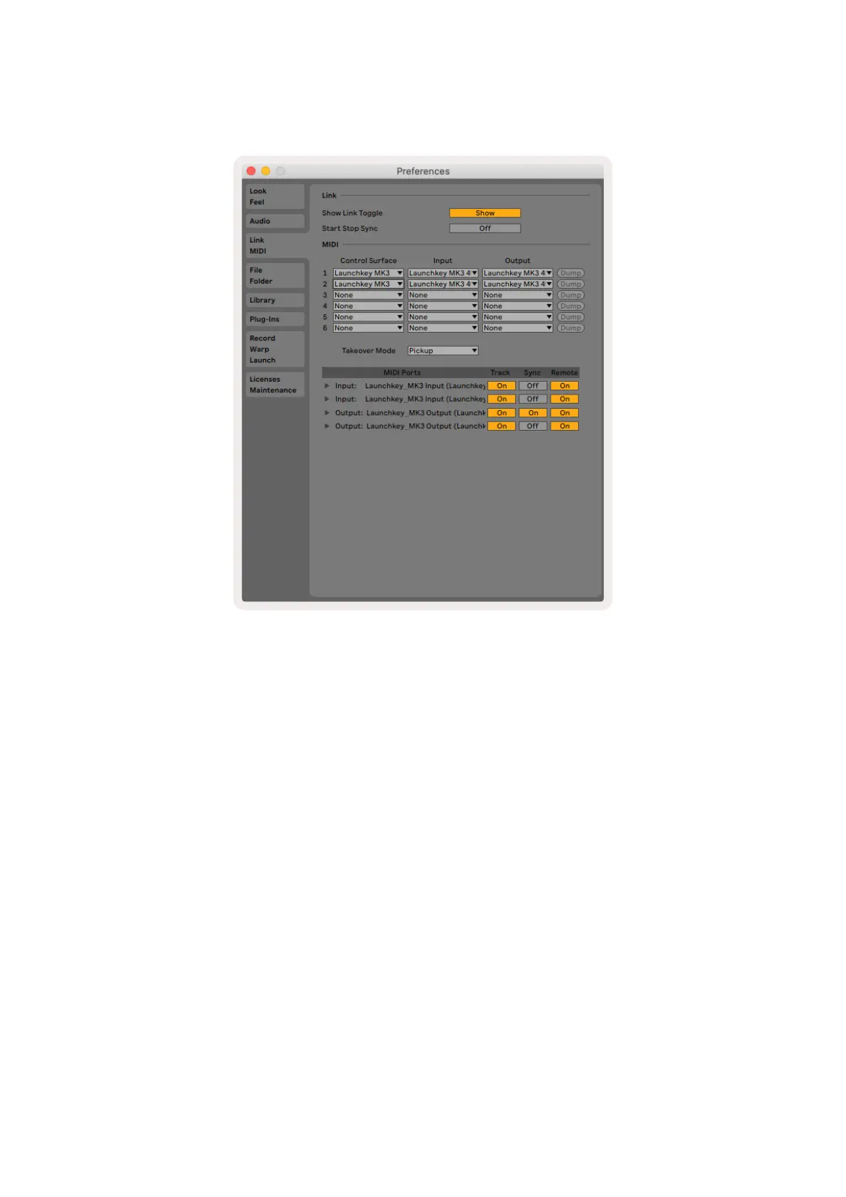 In the Link/MIDI tab you’ll need to copy the settings shown above. First, select your Launchkey MK3