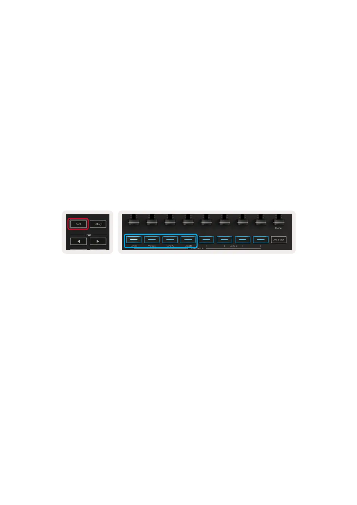 Fader button (highlighted in blue below). When your Launchkey is connected to Live, the faders will