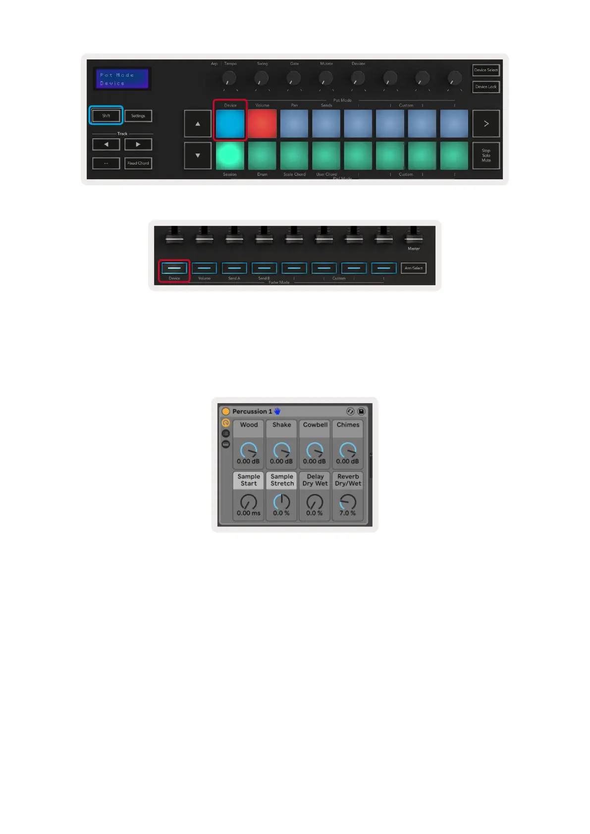 The “Device Select” button allows you to navigate through devices on a track. Press and hold this