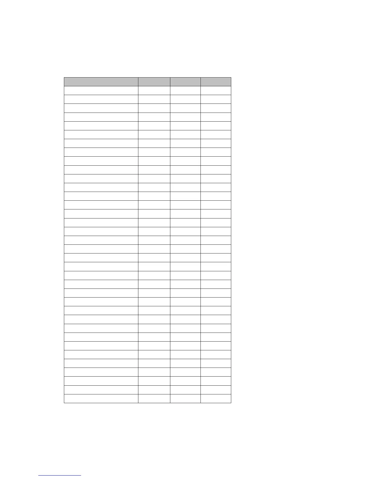MIDI messages table