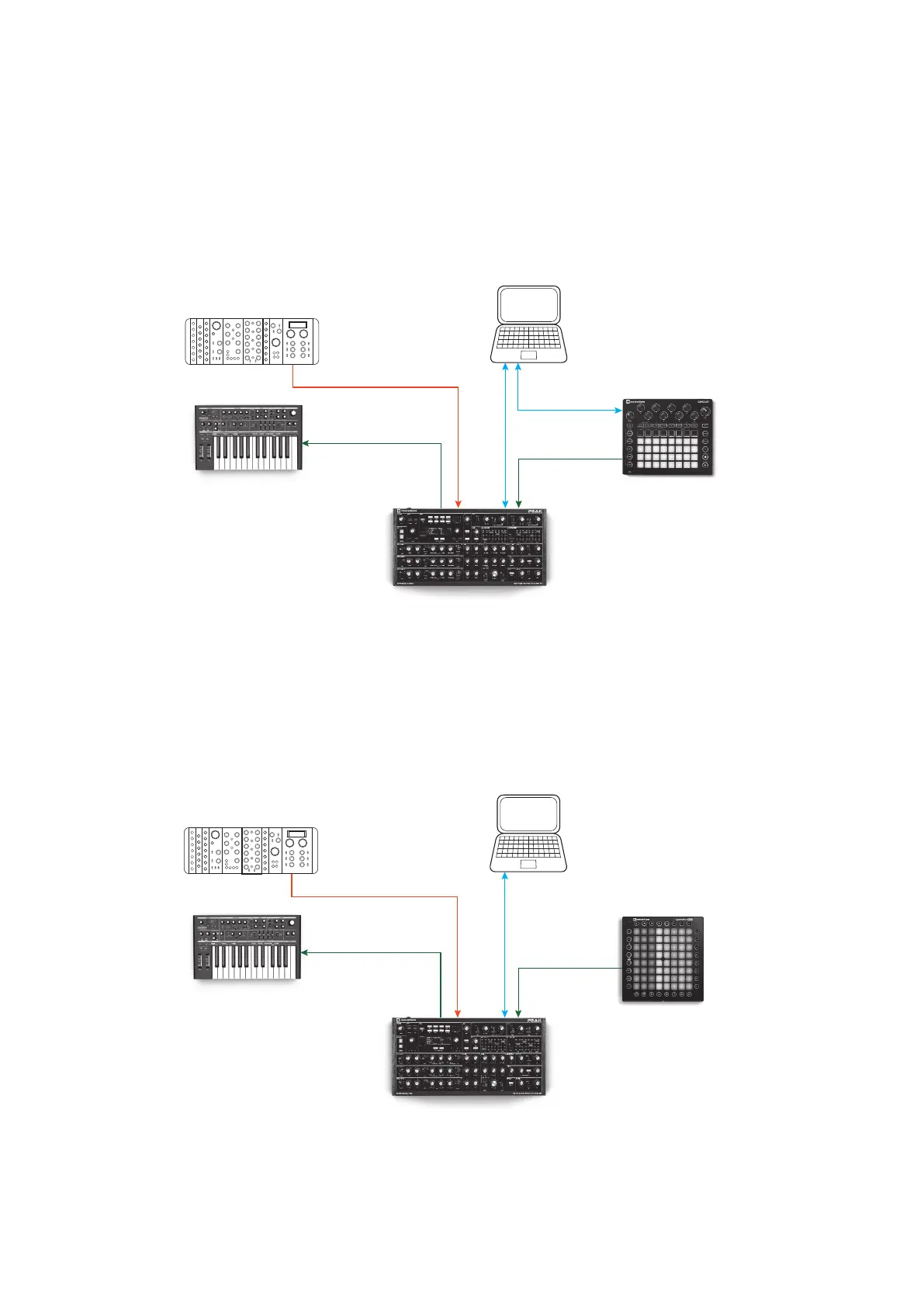 In the second example, a Launchpad Pro in stand-alone mode replaces the Circuit. This