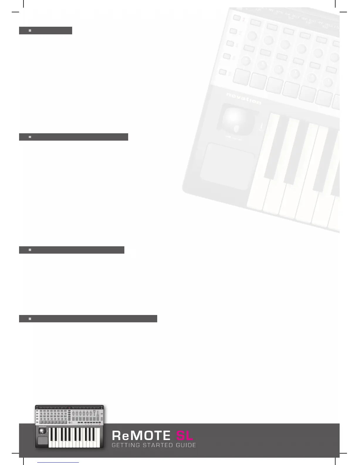unsure of the MIDI setup process. Full details are available in the SL user guide on the Resources CD/Novation website.
