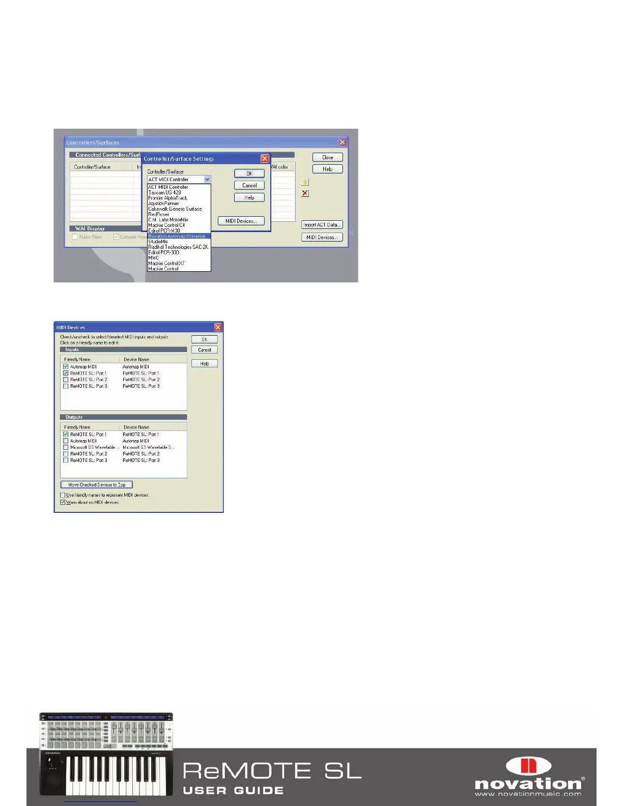 Select ‘MIDI Devices…’ from the ‘Options’ menu and make sure ReMOTE SL ports 2 and 3 are unchecked in the MIDI
