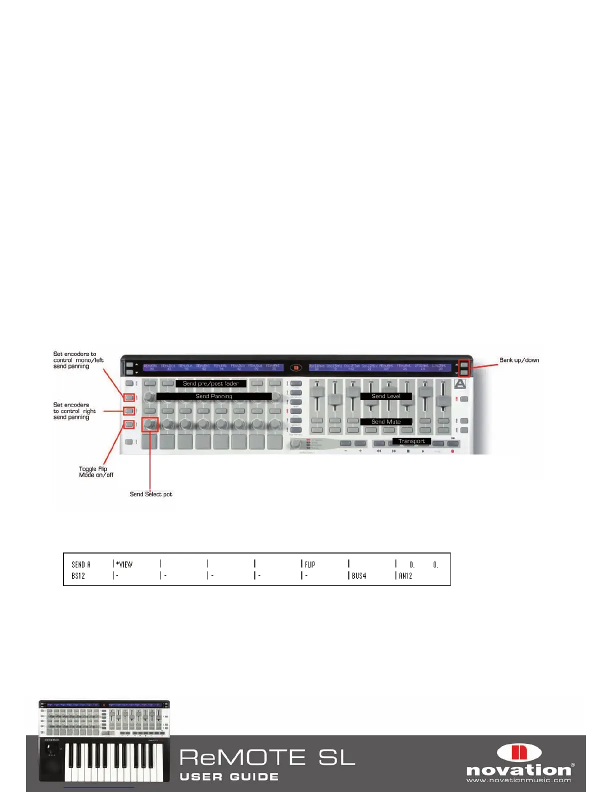 ReMOTE SL is in Flip mode. You can then use the ReMOTE SL to control sends as follows: