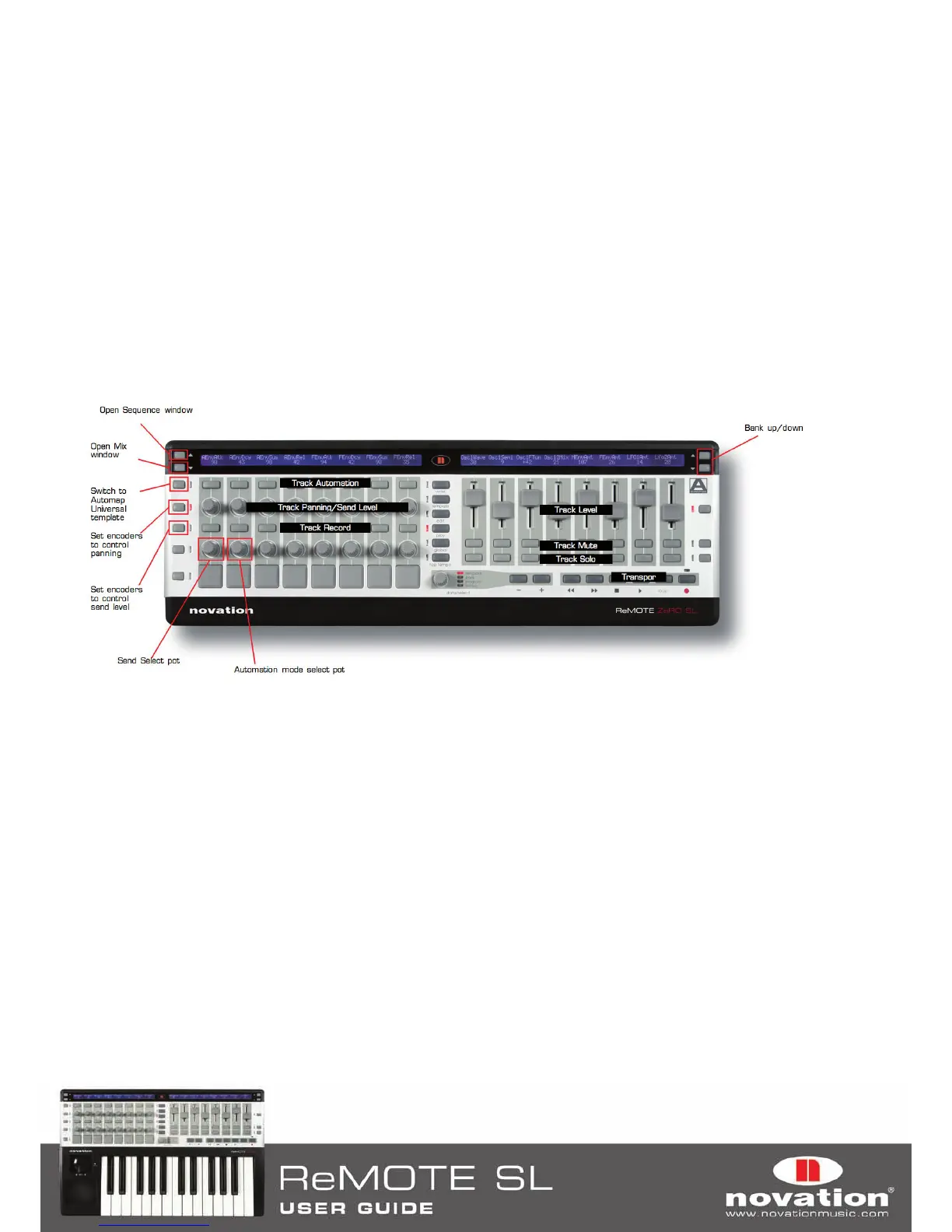 button on the left-hand side of the ReMOTE SL. To control send level, select a send bank using the SEND SELECT pot or